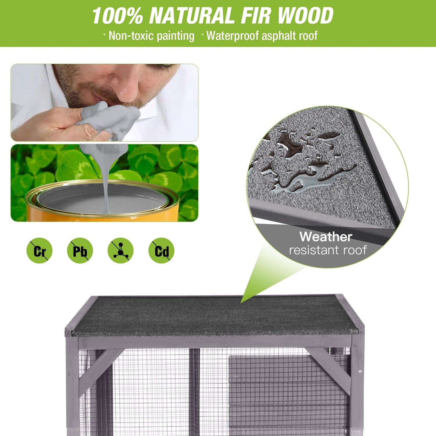 • 【Sturdy & Safety】Reinforcement wooden strip structure surrounding the product make it more robust and durable.Waterproof asphalt roof are perfect for outdoor and indoor use.