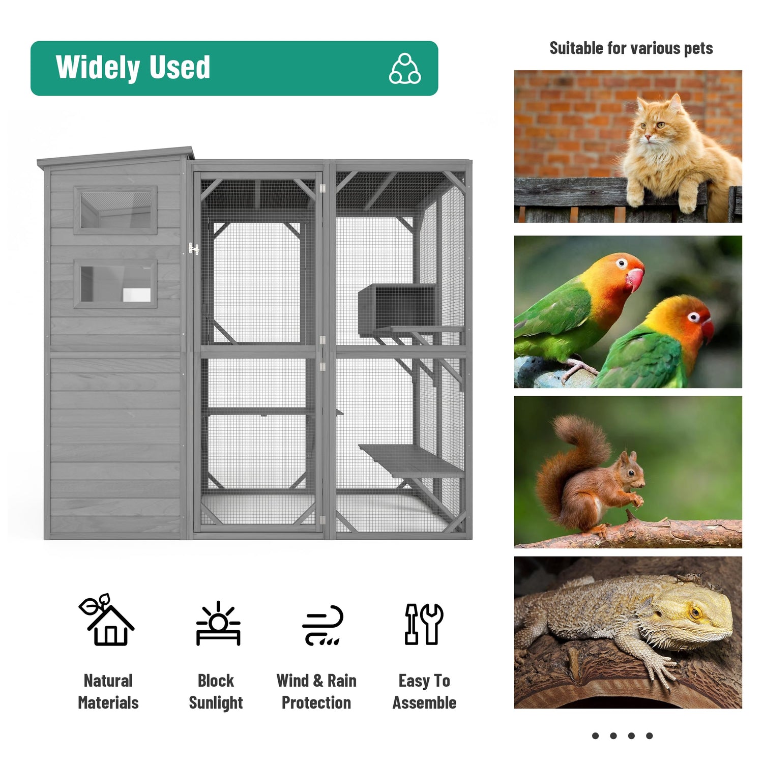 - Sturdy and Durable Construction: Made from high-quality cedar wood and assembled with galvanized wire mesh, our catio is designed for long-term use. The fully enclosed structure ensures your pets' safety while offering durability against the elements.