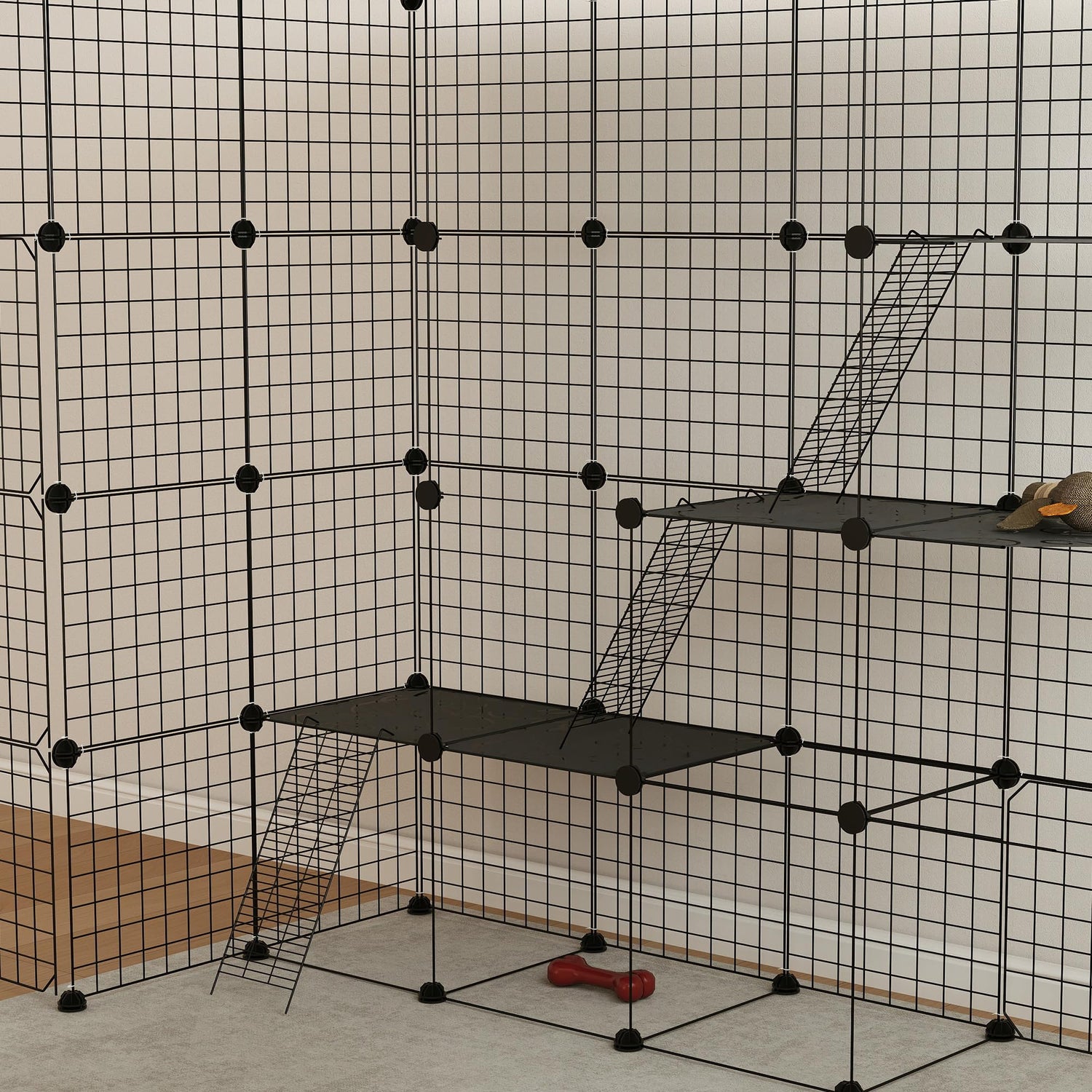 PawHut Cat Cage, 4 x 4 x 4 DIY 4 Tier Cat Enclosure, Detachable Wire Indoor Catio with Hammock, Jumping Platforms, Ramps, Doors, for 1-3 Kittens, 55" L x 55" W x 55" H, Black
