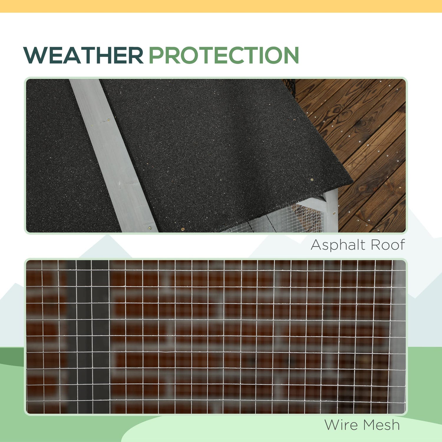 - Weather Protection: The asphalt roof provides this outdoor catio from the rain, ensuring protection during a day of bad weather. Even if light drops begin to fall, your cats can stay outside enjoying the fresh air.