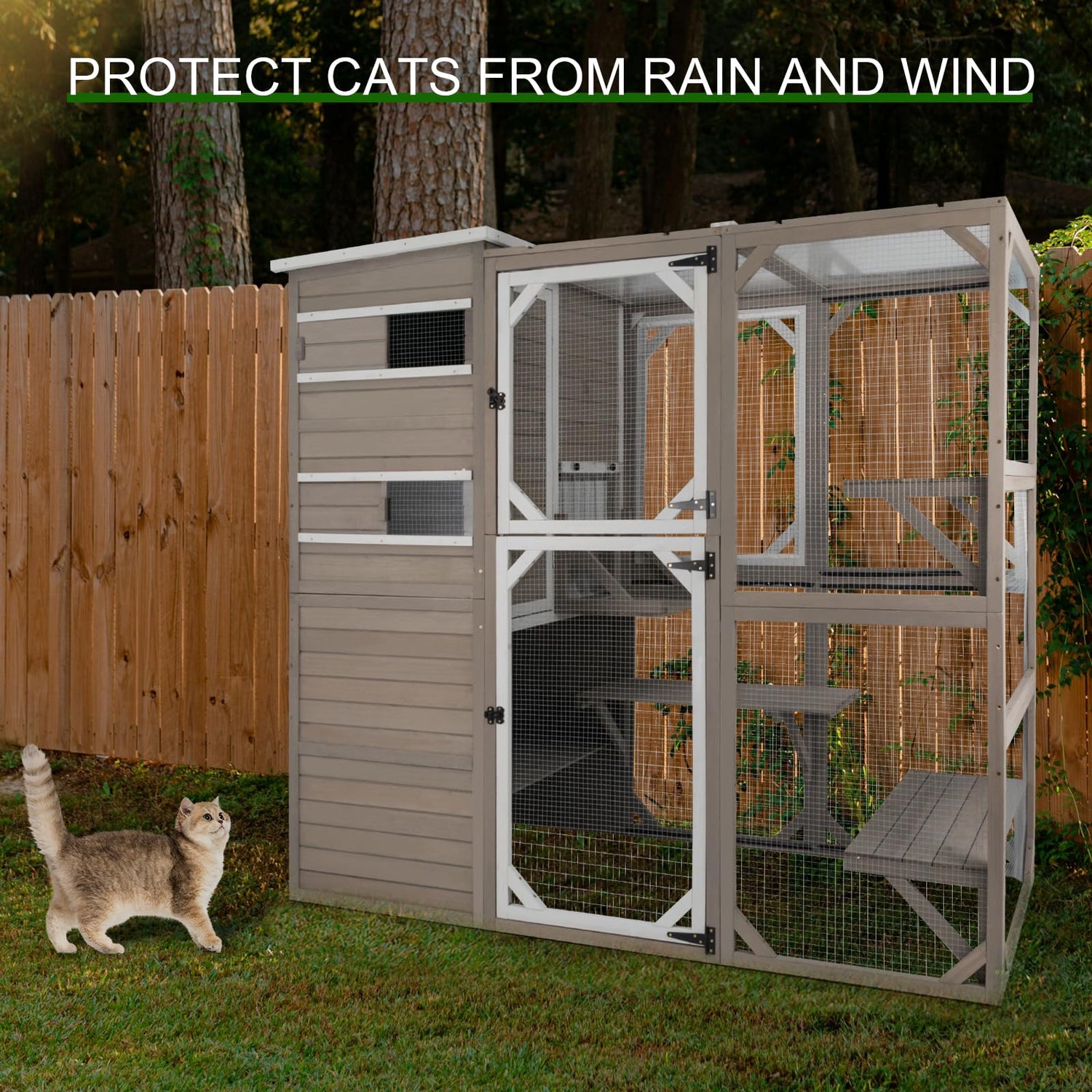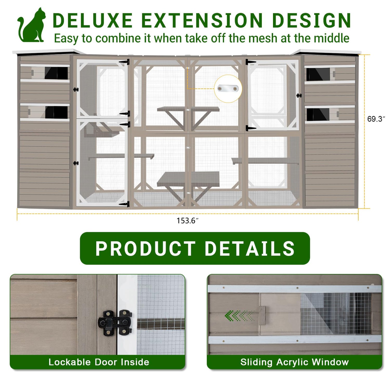 PetsCosset Cat Enclosure Outdoor, Large Catio Cat House Weatherproof Attached to Window for Multi Cats, Asphalt and UV Protection Roofs, Multi Platforms-Combinable-71 H 77L