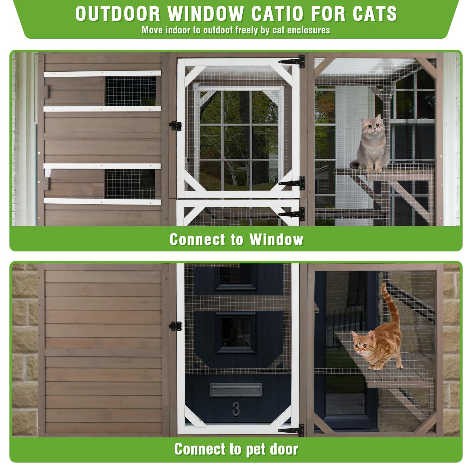 - Cat Window: Uninstall the back part or cut off the mesh,then attach the cat cage to house's window(Pet Door),allow your cat access indoor to outdoor freely through the enclosure,enjoy the outside life.Can 2 sets combined to expand the cat's activity.
