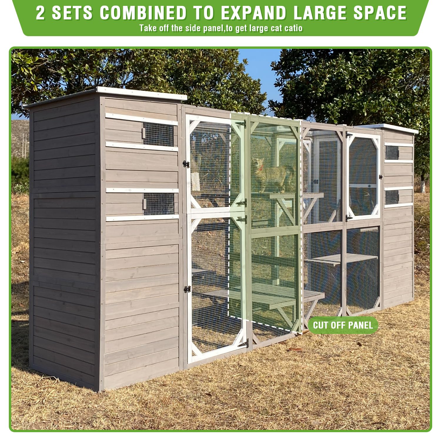 - 4-Tier Outdoor Cat Enclosure:This large cat catio comprises 2 cozy sleeping condos and 7 jumping platforms for your cats to play, climb and rest comfortably. Explore and exercise for your pets,also suitable for raccoons, squirrels, lizards, birds.
