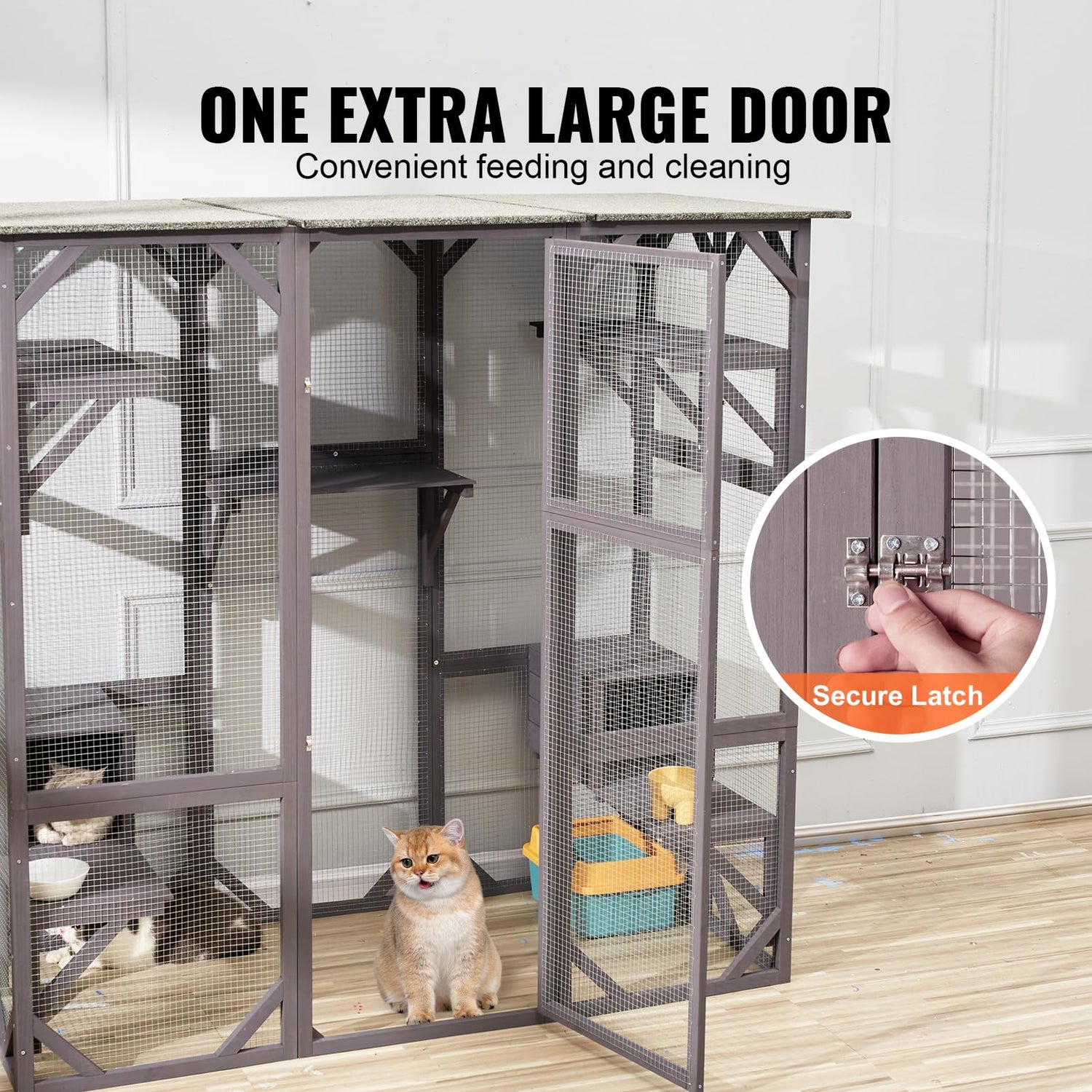 VEVOR Cat Cage Condo Catio Outdoor/Indoor Cat Enclosure, Wooden Cat House with 5 Platforms, 7-Tier Pet Playpen with 2 Resting Box, Cat Crate Cat Kennel with Waterproof Roof, 71.2"L x 34.6"W x 66.5"H