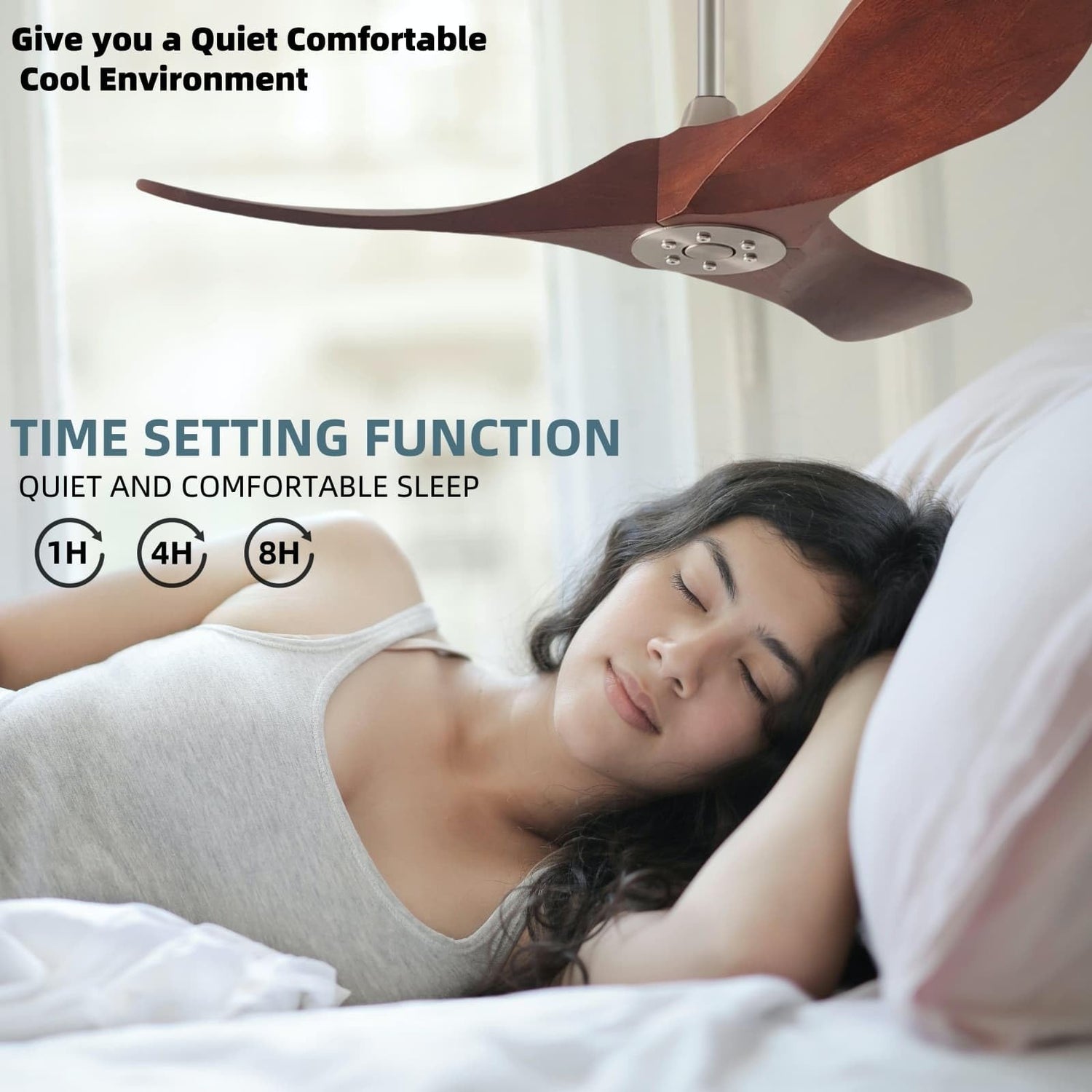 • 【Solid Wood Blades】 3 blade ceiling fan no light. The 3 blades are made of natural wood with clear texture, rigorous craftsmanship, and a smooth and delicate surface, ensuring durability. Adopting aerodynamic design, all blades have undergone hundreds of professional balance tests to ensure stable rotation of the fan.