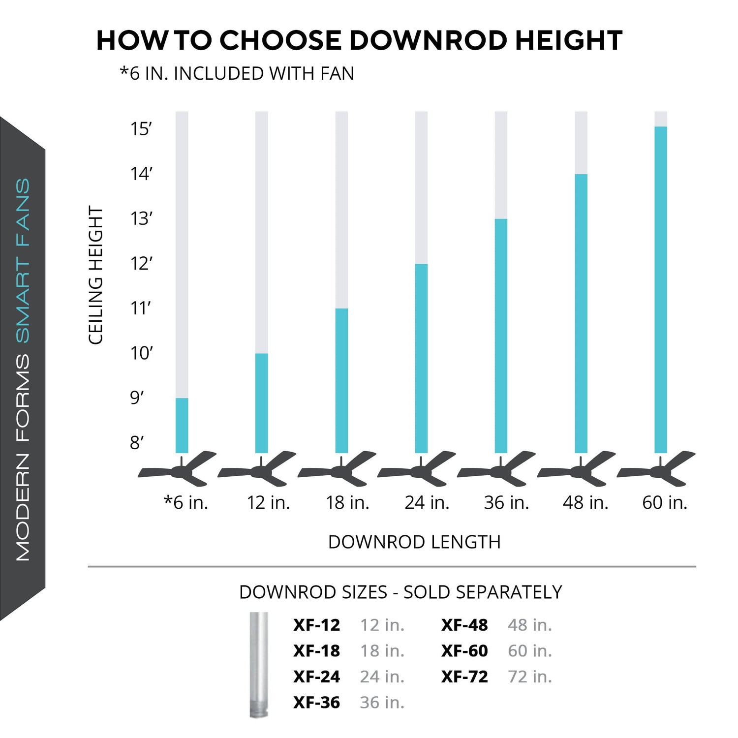 Details: 3/4 in. downrods can be used to extend downrod ceiling fan height. Downrods are available in 12 in., 18 in., 24 in., 36 in., 48 in., 60 in., and 72 in. sizes along with a variety of finish options to match your fan finish. Downrods can be joined together using a downrod coupler (XF-I) to make lengths greater than 72 in. and may also be shortened in the field. Not recommended for use with any ceiling fans other than Modern Forms Smart Fans or WAC Smart Fans.
