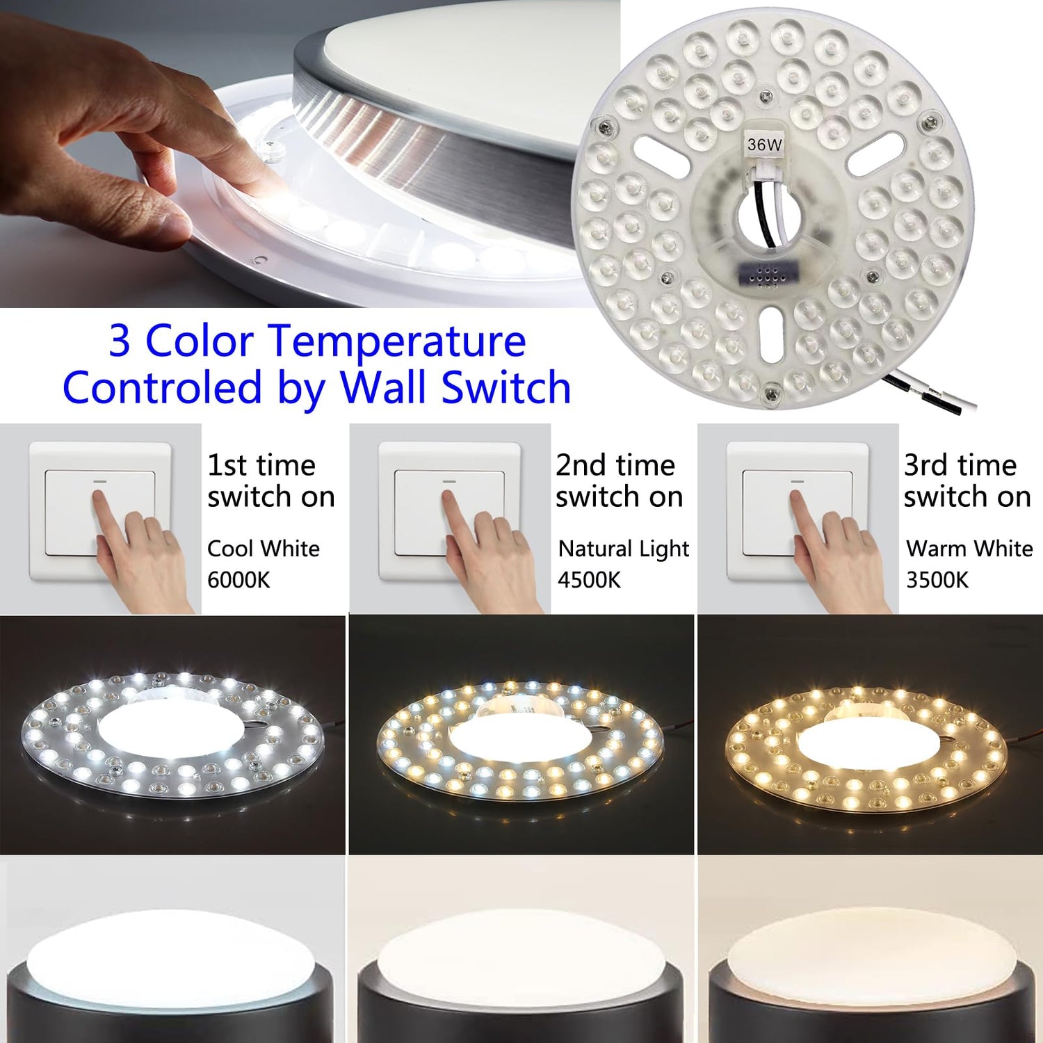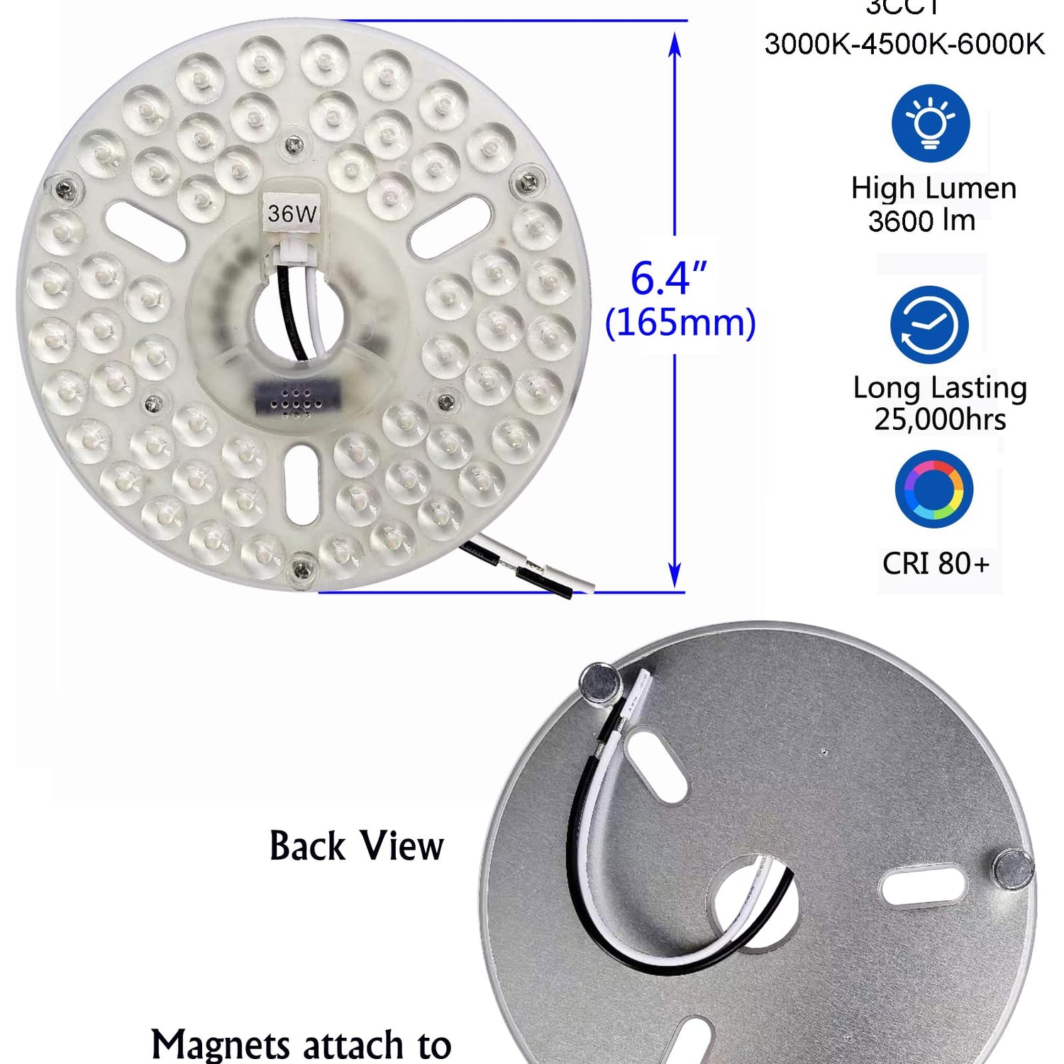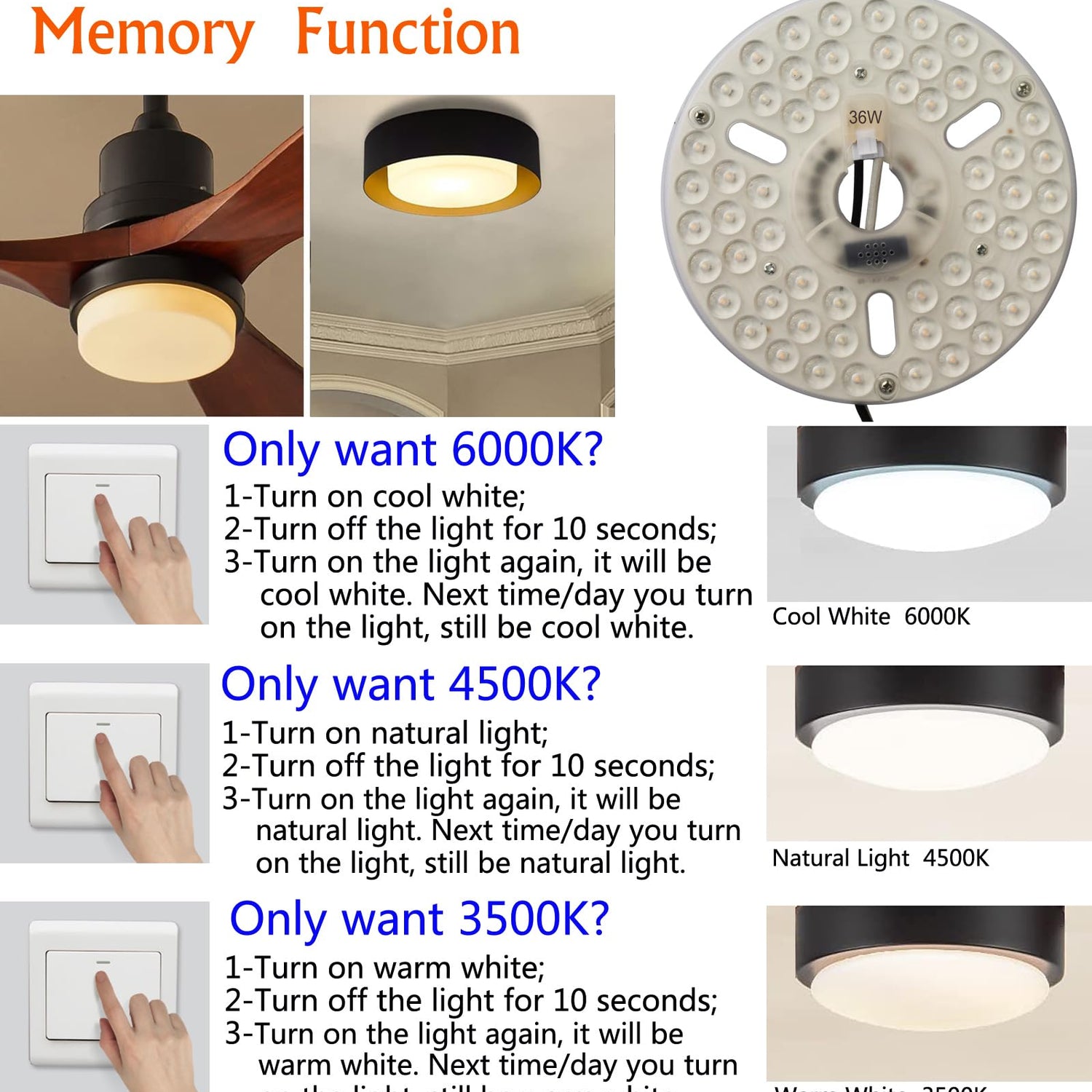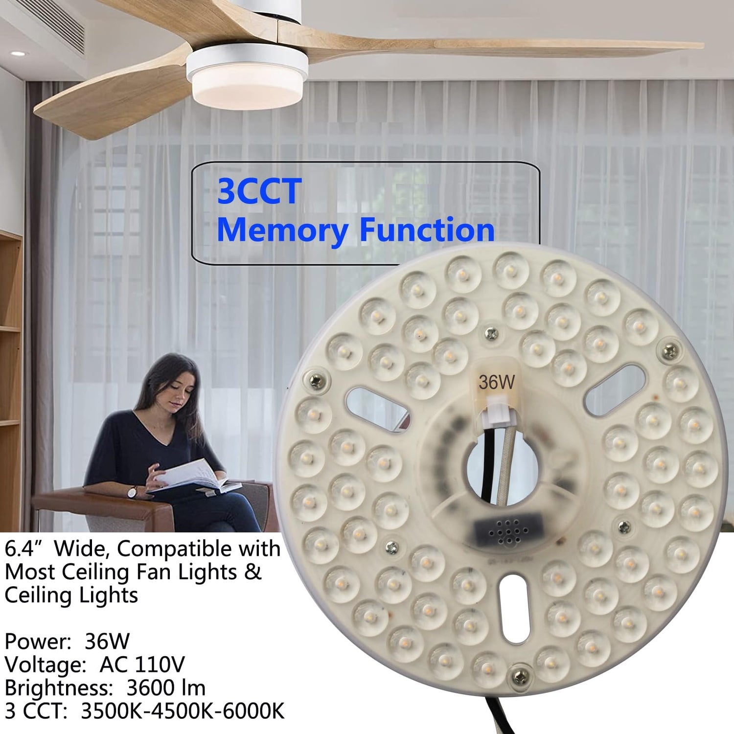 36W 6.4" LED Ceiling Fan Light Kit - Replacement LED Light Board Panel with 3 Color Temperature Memory Function