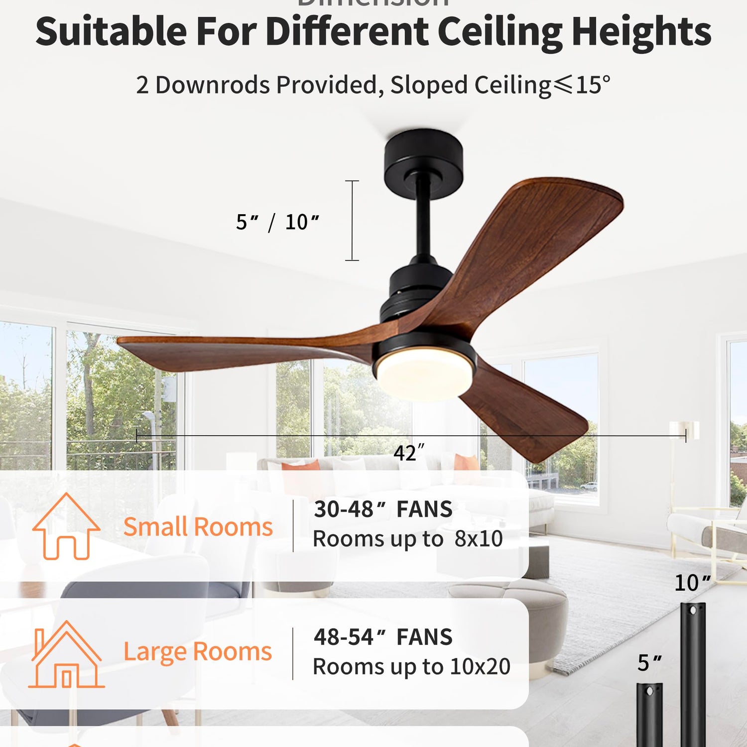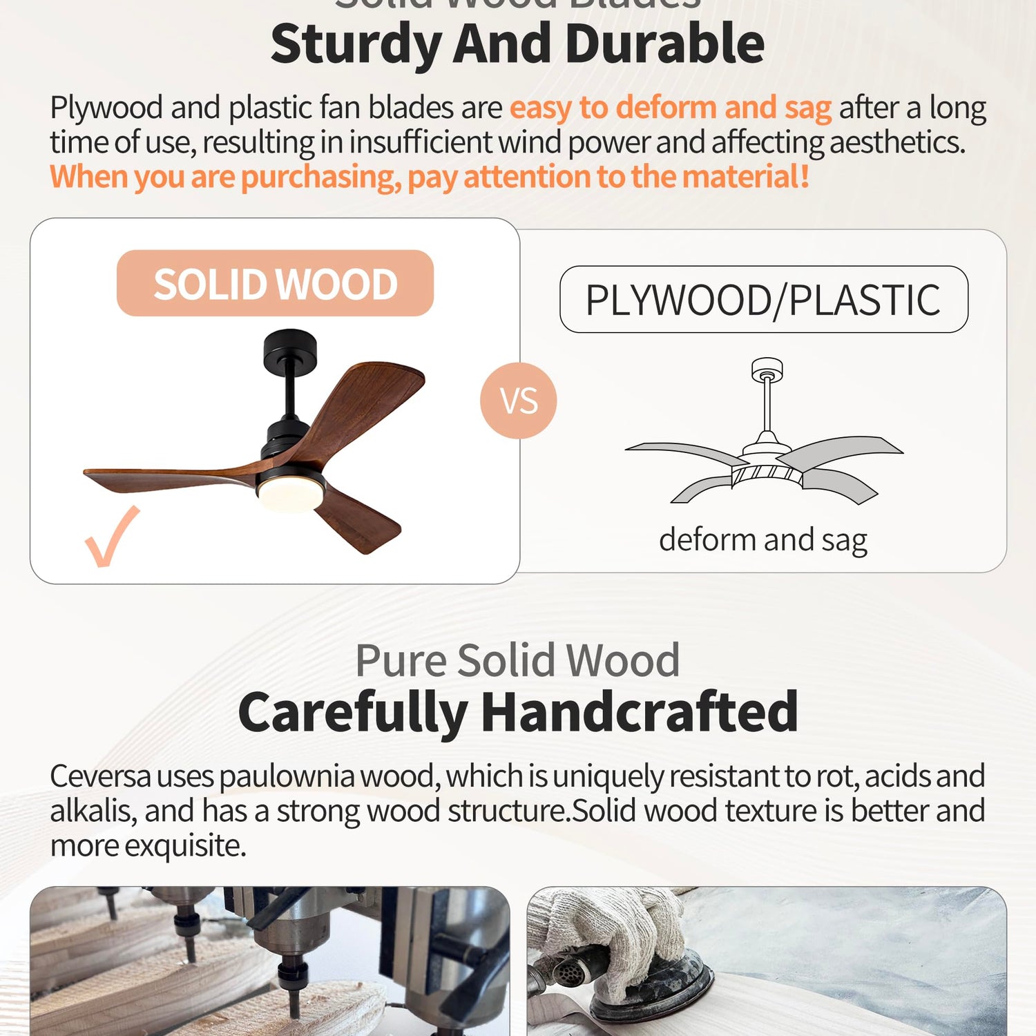 Ceversa 42 Inch Solid Wood Ceiling Fan with Light and Remote Control,3 Blades Craftmade Modern Ceiling Fan Quiet for Living Room Bedroom Farmhouse Indoor Outdoor