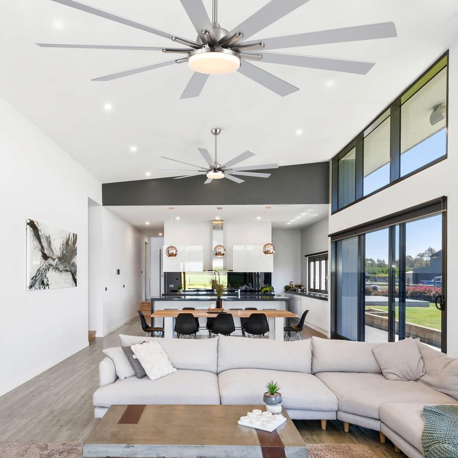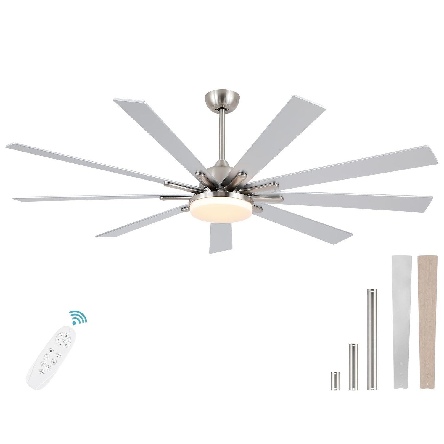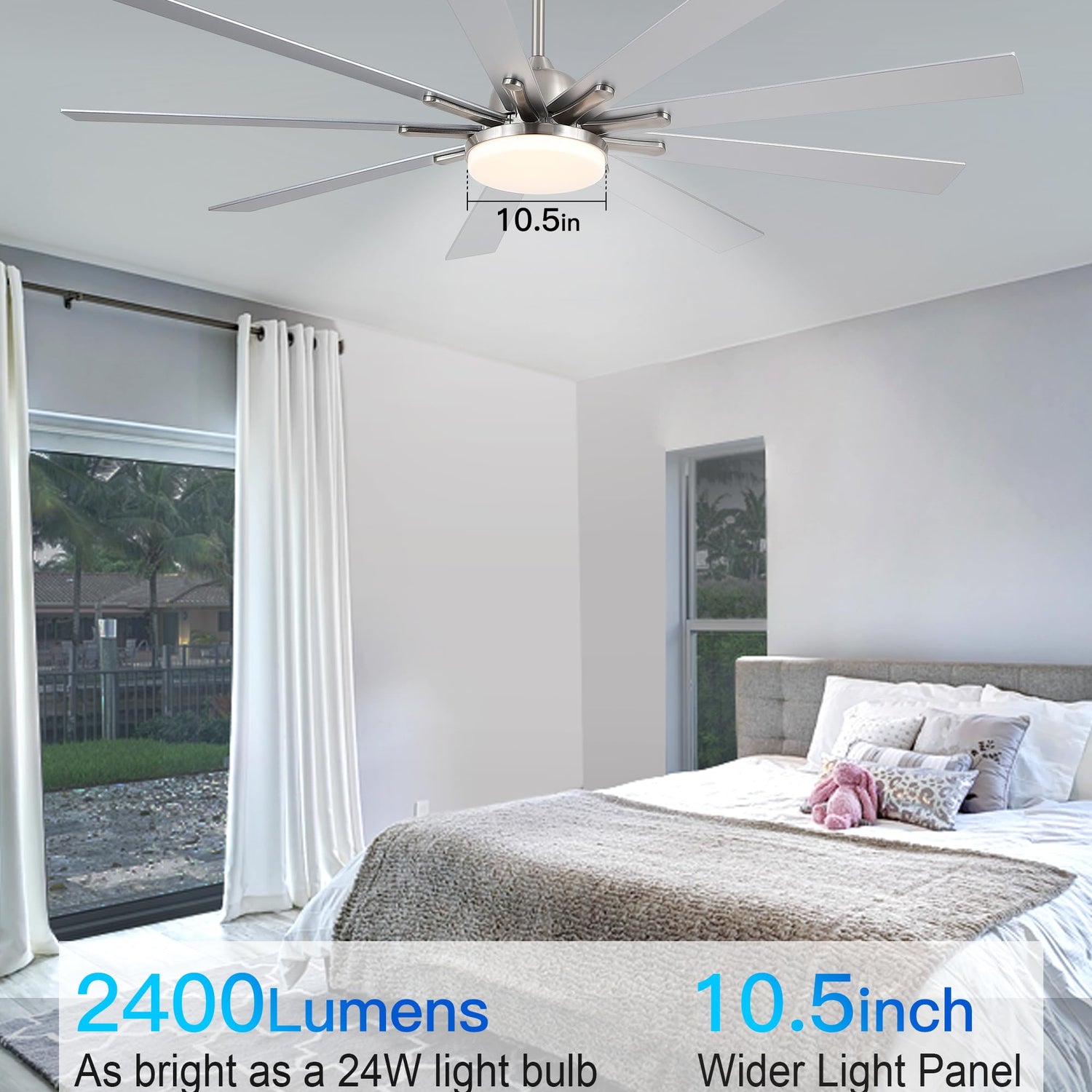 POCHFAN 72 inch Ceiling Fans with Lights and Remote, Large Ceiling fan with 9 Wooden Blades for Kitchen Living Room Indoor or outdoor Patio,Quiet 3 CCT,6 Speed, Brushed Nickel
