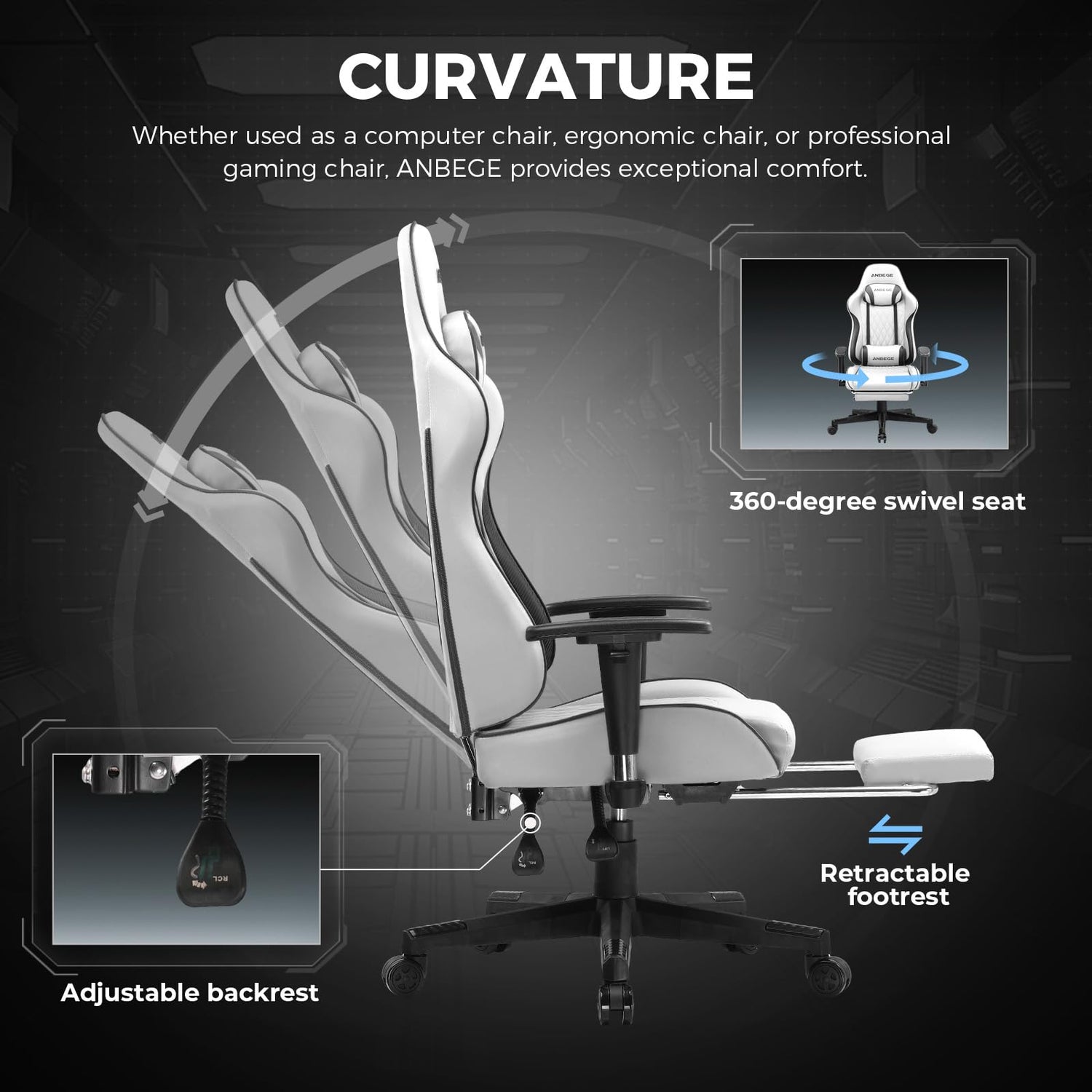 ANBEGE Gaming Chair, Ergonomic Computer Chair with Footrest and Lumbar Support,Office Chair Adjustable PU Leather Racing Executive Swivel Rolling Chair (White)
