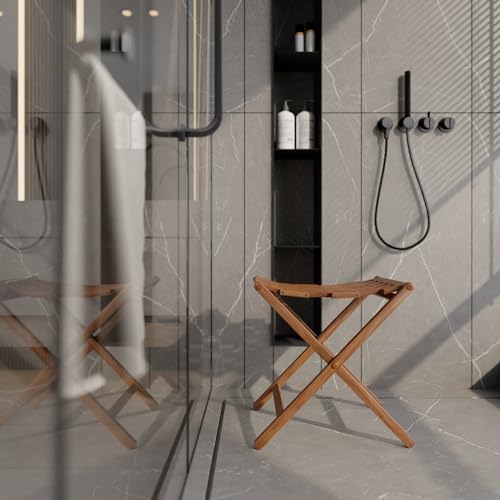 Details: Folding Teak Mosaic Stool by Bare Decor. Folds for easy storage and transportation. Lightweight and is perfect for indoor/outdoor use and special occasions like outdoor festivals, parades, fishing, or just in the backyard. Folded Dimensions: 14.5"x 25.5" x 6"