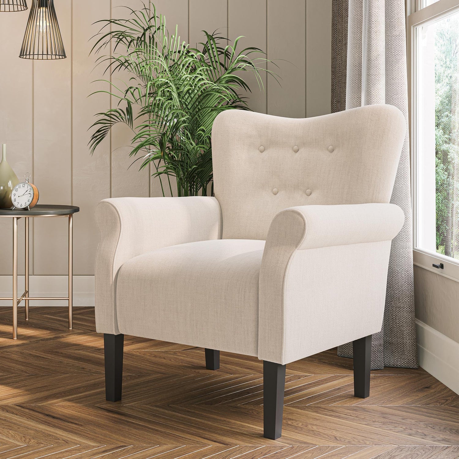 - [QUALITY MATERIAL] Wingback accent chair filled with high-resilient thick sponge, firm enough to provide support without being too firm to cause discomfort. Fine linen fabric features gentle texture, not easy to pilling and abrasion, durable to use for many years.