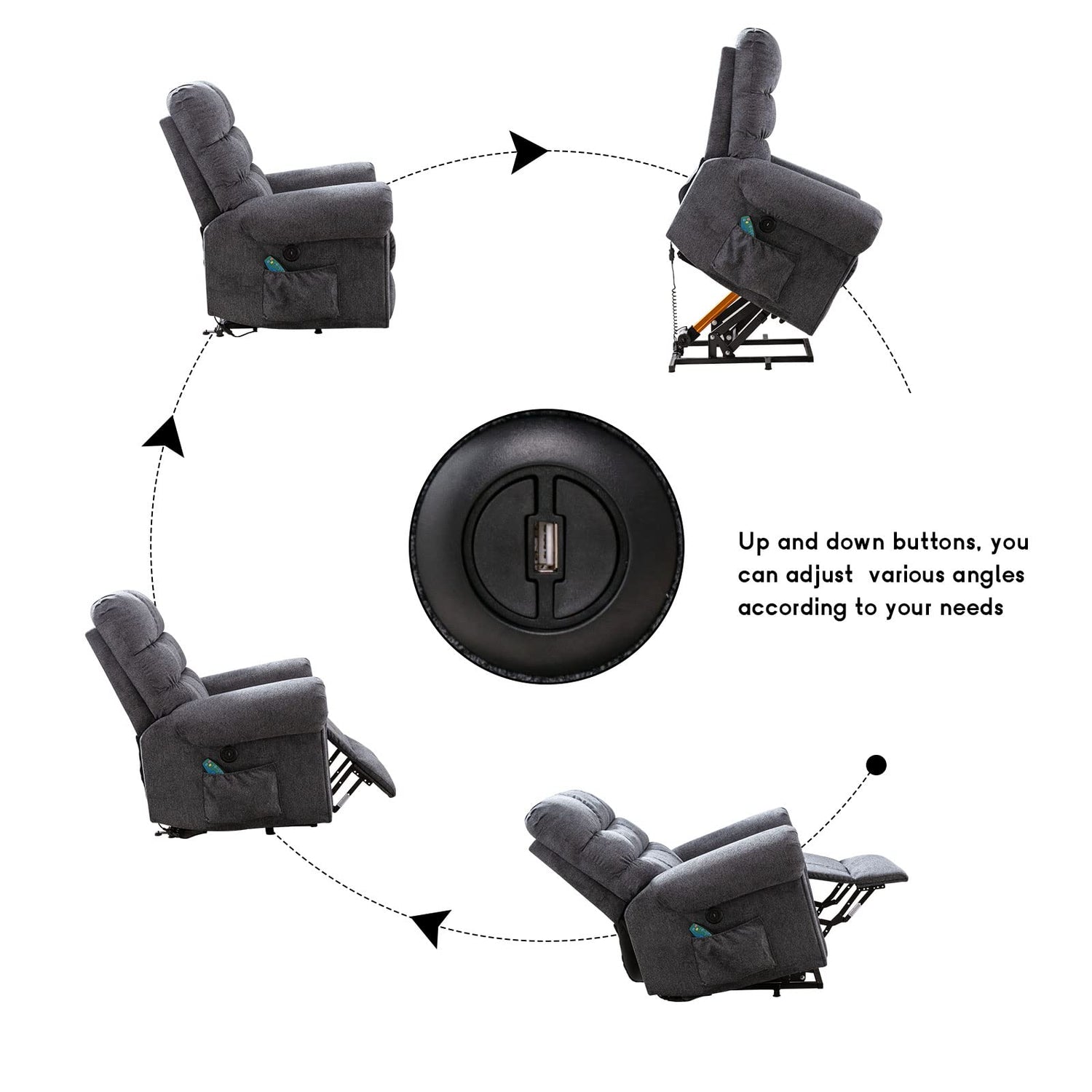 - Power Lift Recliner Chair: You can press the side button to control the lift or recline of the recliner chair, which means you can get any position you want, whether it's reclining between 110-150 degrees or lifting. The lift chair is powered by electric motor mechanism to push the entire chair up, working smoothly and silently to help the elderly stand up easily. It’s also ideal for people who have balance problems with legs or back, or who after surgery.