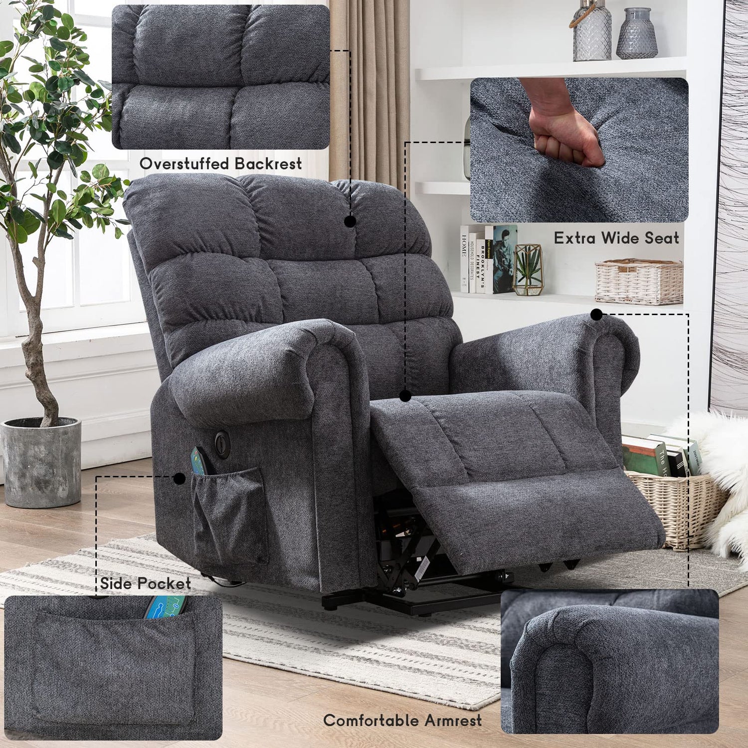 CANMOV Large Power Lift Recliner Chairs with Massage and Heat for Elderly Big People, Heavy Duty Electric Reclining Chairs Overstuffed Wide Recliner with USB Port and Side Pocket, Gray