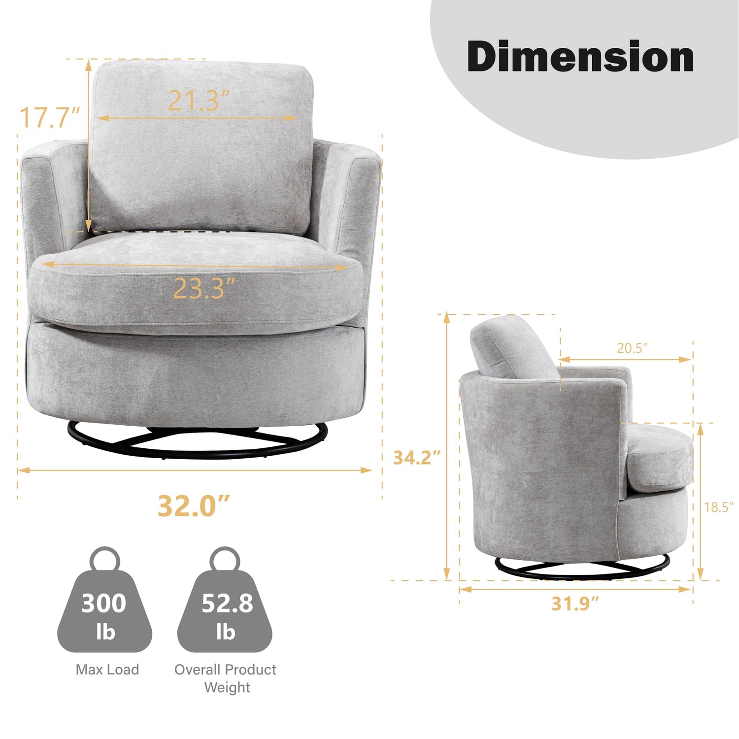 Chifee & Vingol 32" Chenille Swivel Barrel Chair Upholstered Round Chair,Light Grey