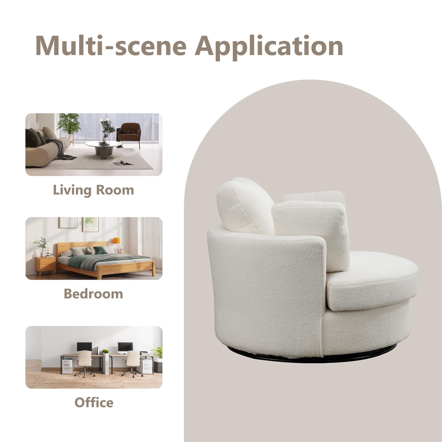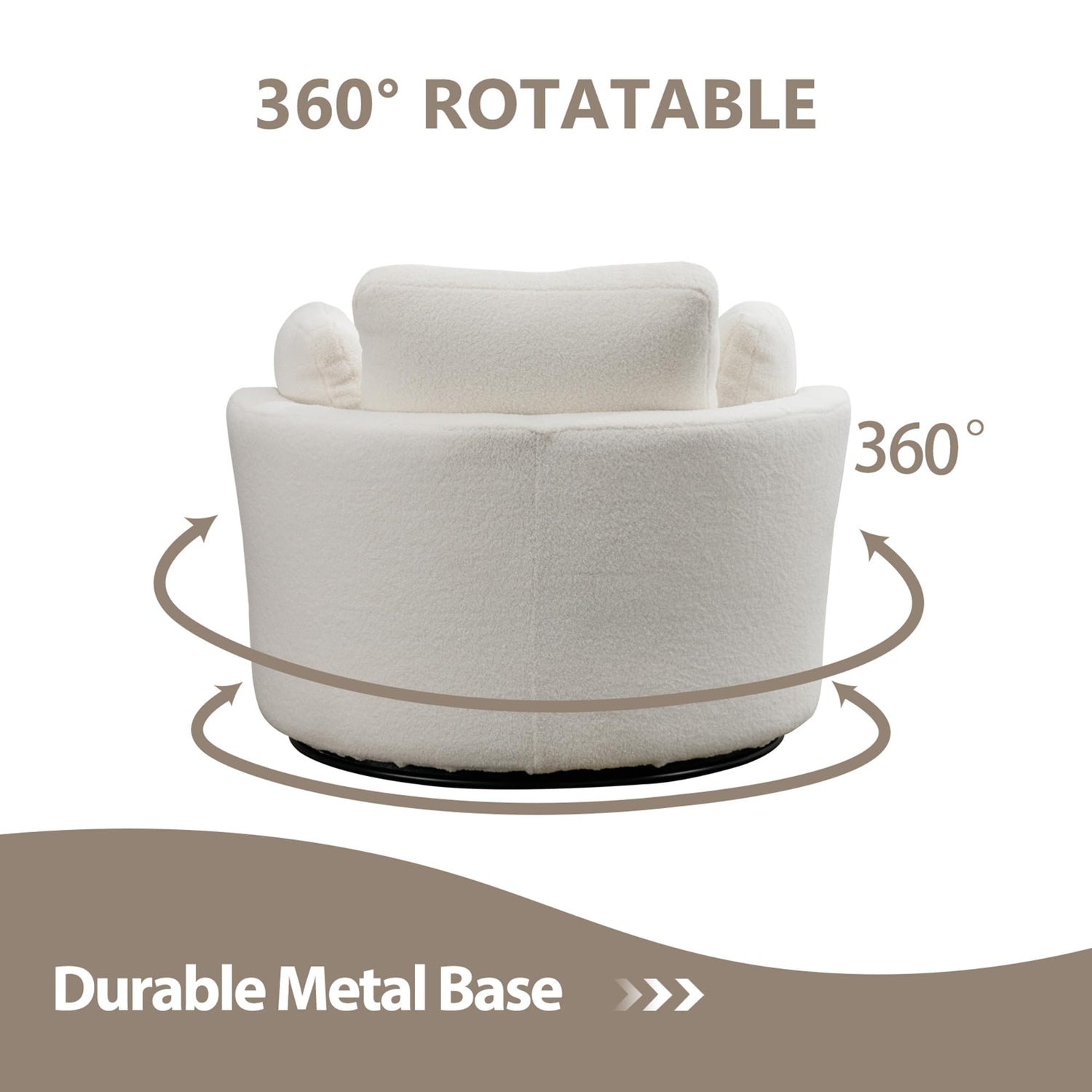 Chifee & Vingol 42.2" Oversized Swivel Accent Chair Round Barrel Chair,Sherpa,Ivory