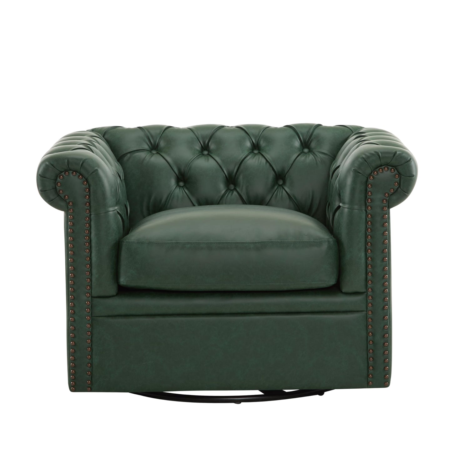 Christopher Knight Home Oakley Chesterfield Faux Leather Upholstered Club Chair,Button-Tufted 360° Swivel Chair,Scrolled Arm Living Room Sofa Chair, No Assembly Required Furniture, Green