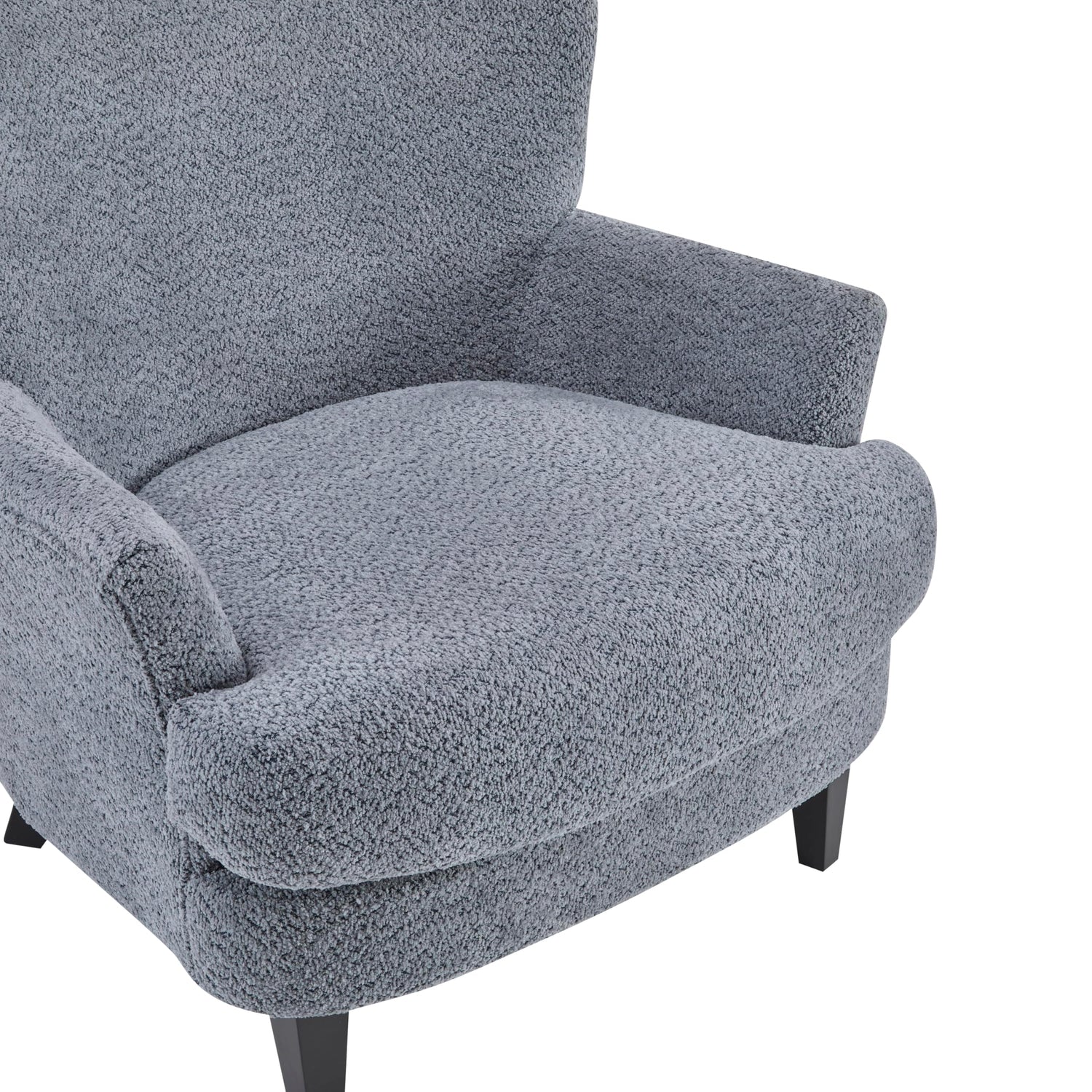 - Comfy Reading Chair with Bouclé Fabric Upholstery: Wrapped in luxurious bouclé fabric, both the chair and ottoman offer a soft, inviting texture that enhances comfort while adding a modern aesthetic. The plush, nubby feel of the fabric elevates the overall design, creating a stylish and cozy addition to any contemporary or classic living room