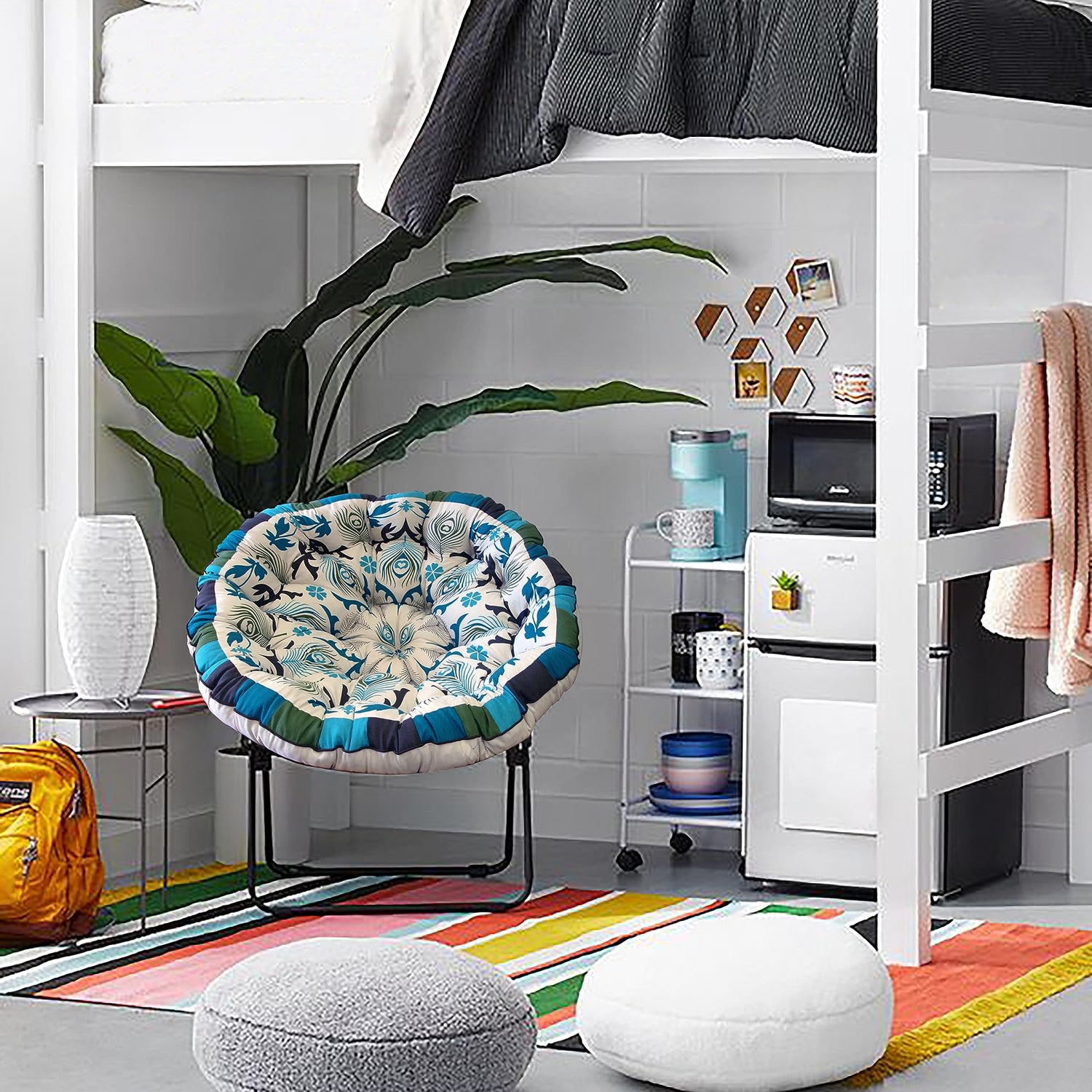 COTTON CRAFT Papasan - Polly Peacock - Blue - Overstuffed Chair Cushion, Sink into Our Thick Comfortable and Oversized Papasan, Pure Cotton Duck Fabric, Fits Standard 45 inch Round Chair