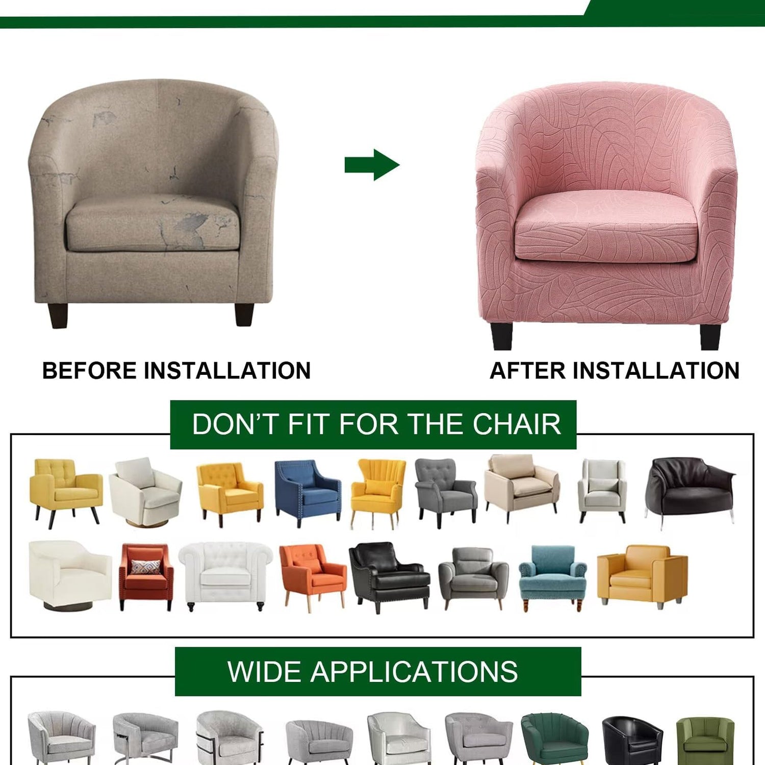- ✅Upgraded 2 Piece Design: With upgraded two piece design, there is no need to worry about foam sticks popping out again, which means less trouble and cozier leisure. Also, high elasticity fabric and elastic straps on the bottom will keep the club chair slipcovers staying in place more firmly. Fit the tub chair width/height: 27.6-31.5 in (70-80cm); seat length/width: 18.1-22.1 in (46-56cm); cushion seat height: 11.1-14.1 in(28-36cm). Kindly measure your club sofa before ordering.