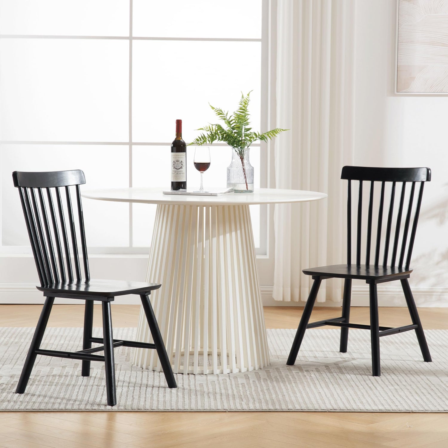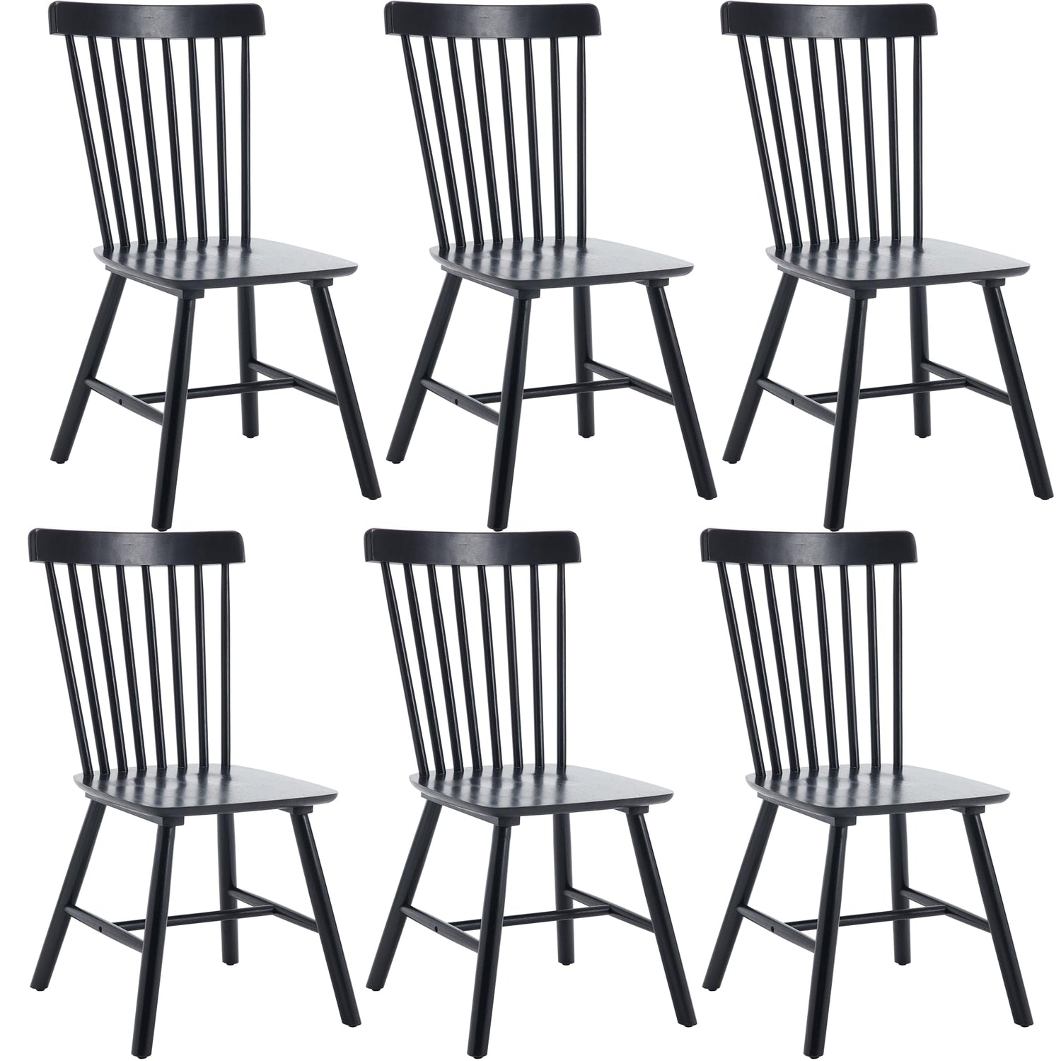 DM Furniture Dining Room Chairs Set of 6 Windsor Dining Chair with Spindle Back,Farmhouse Armless Side Chair,Solid Wood French Country Kitchen Chairs for Home/Patio/Restaurant, Black