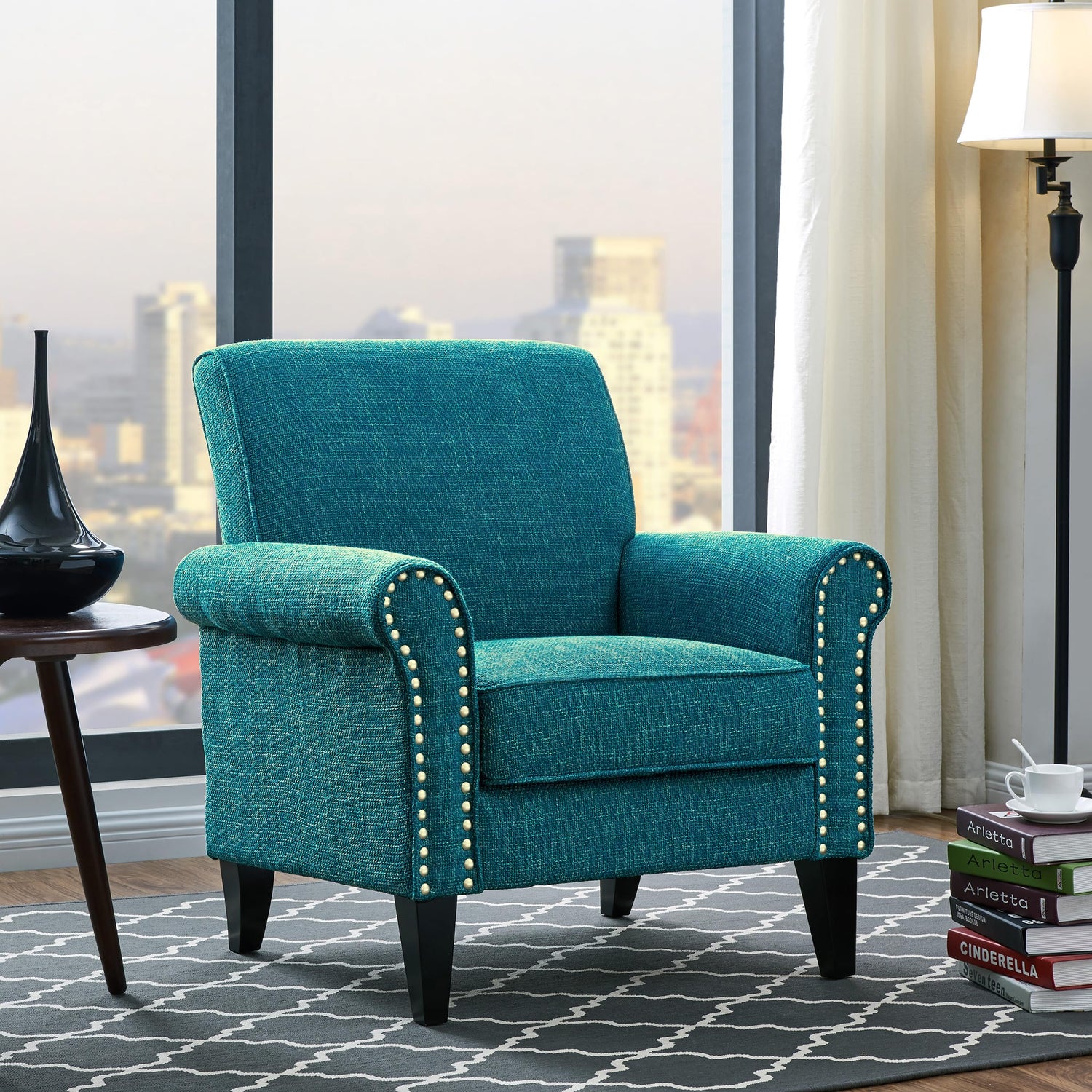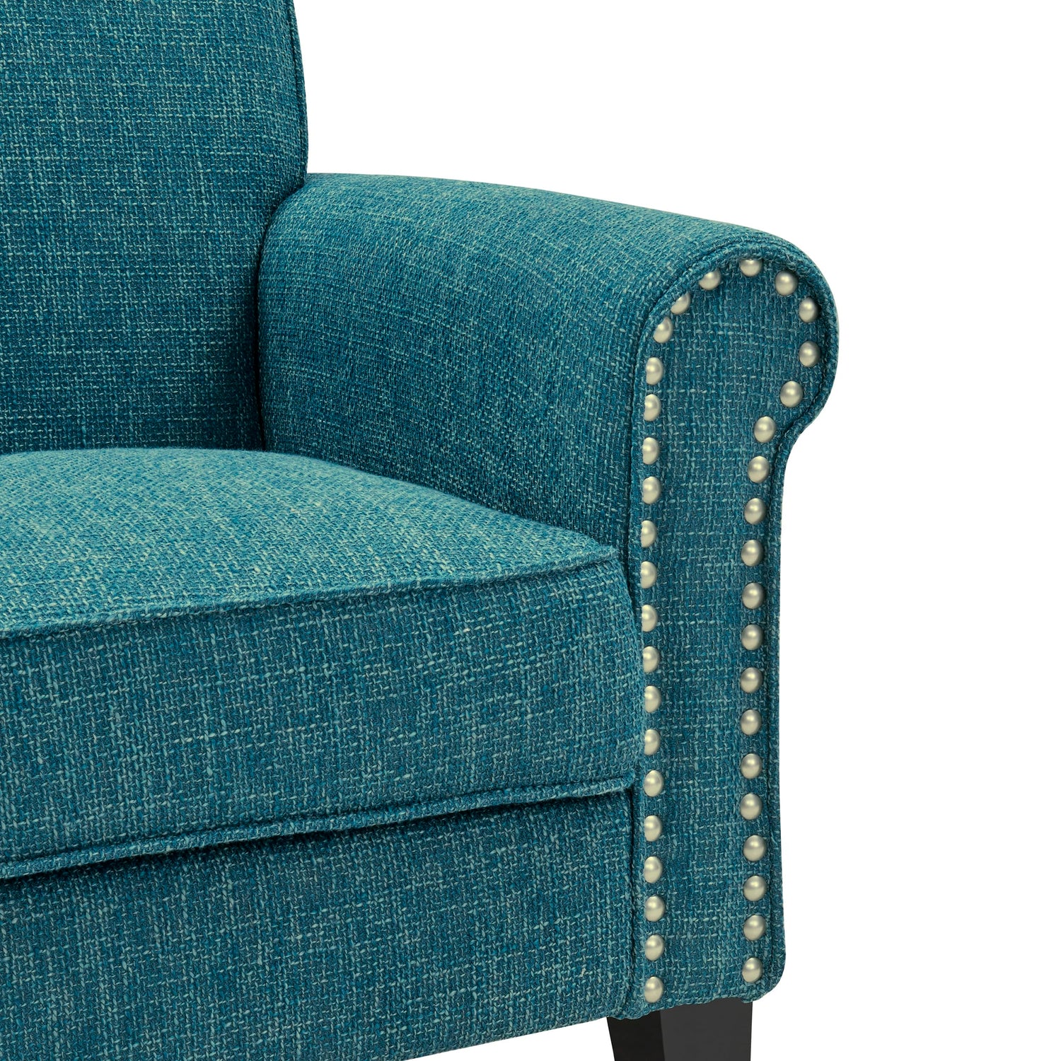 Domesis Kiara Traditional 34" Wide Upholstered Rolled Arm Living Room & Bedroom Accent Chair, Comfy Elegant Armchair with Pewter Nailheads, in Blue Tweed