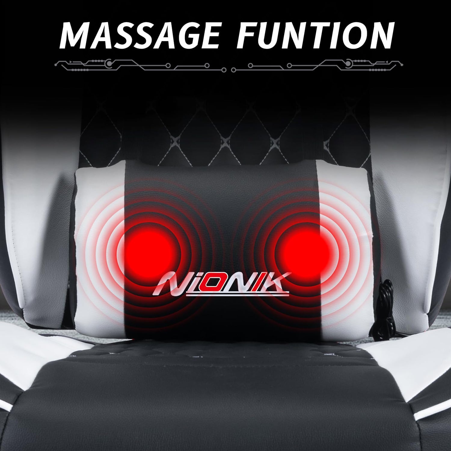 Ergonomic Video Gamer Chairs,Computer Gaming Chairs with Massage Lumbar Support and footrest,Racing Style Computer Chair Adjustable Headrest for Adults,Blackwhite