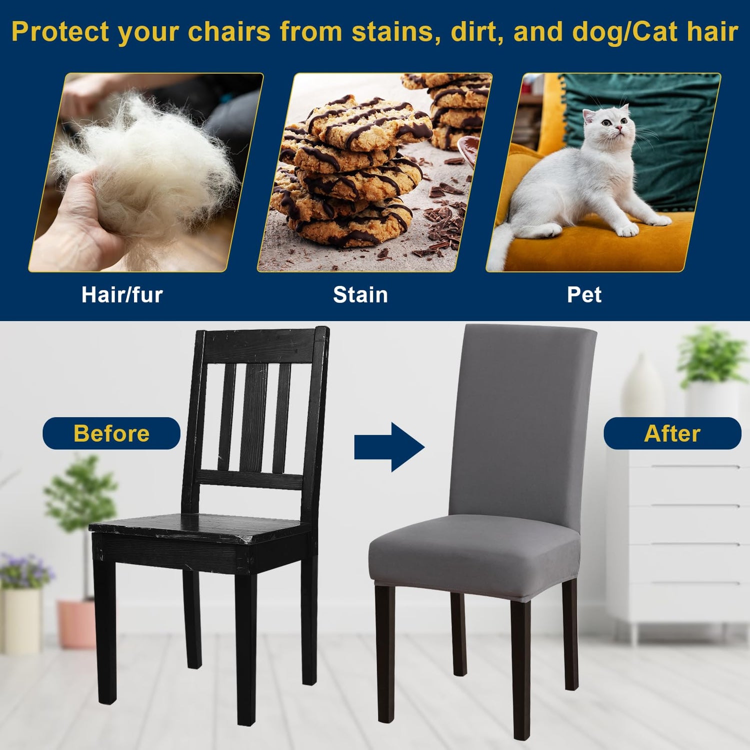 - Protect Chairs: Chair covers protect your dining chairs from stains, dirt, and dog hair. Equipped with a sewn elastic band to prevent sliding, is more fixed than an ordinary dining room chair slipcover. suitable for your home decoration
