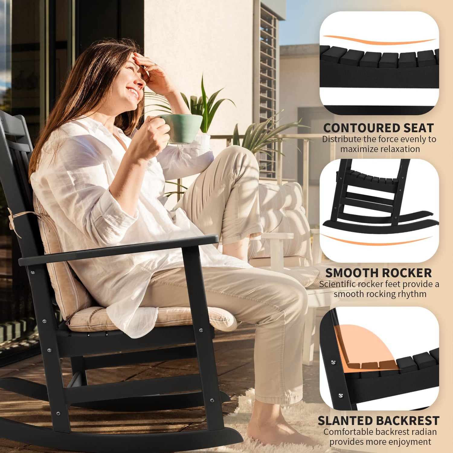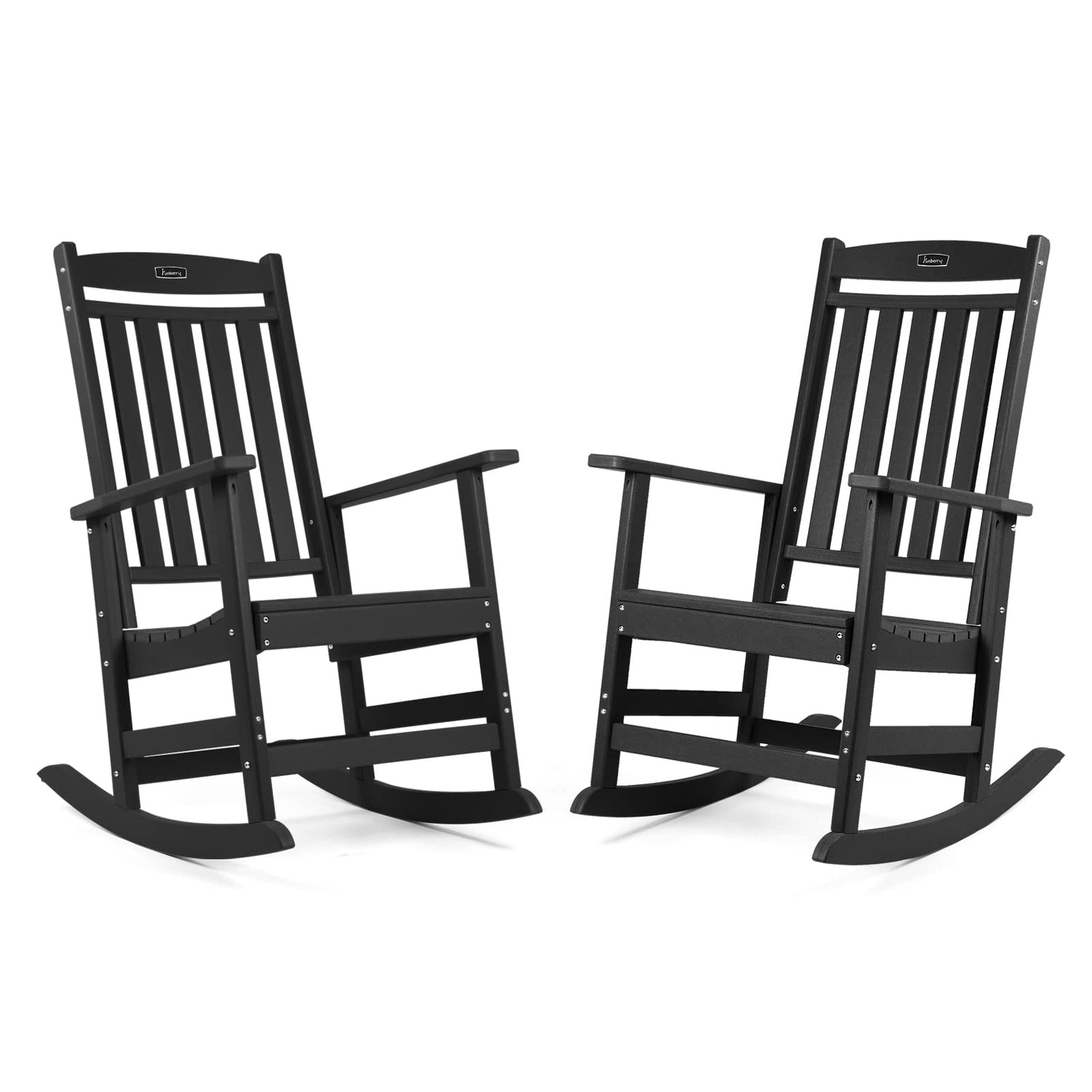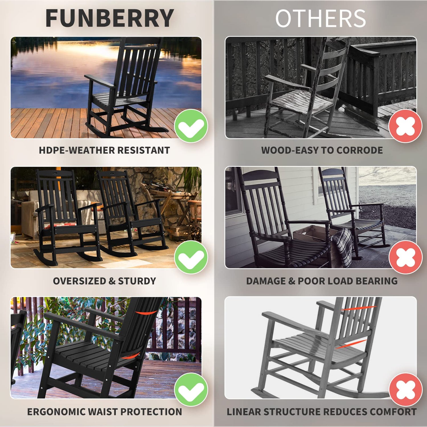 FUNBERRY Patio Rocking Chairs Set of 2,Poly Lumber Rocker,All Weather Rocking Chair Outdoor,High Back Porch Rocker,Cracker Barrel Rocking Chairs for Porch,360lbs