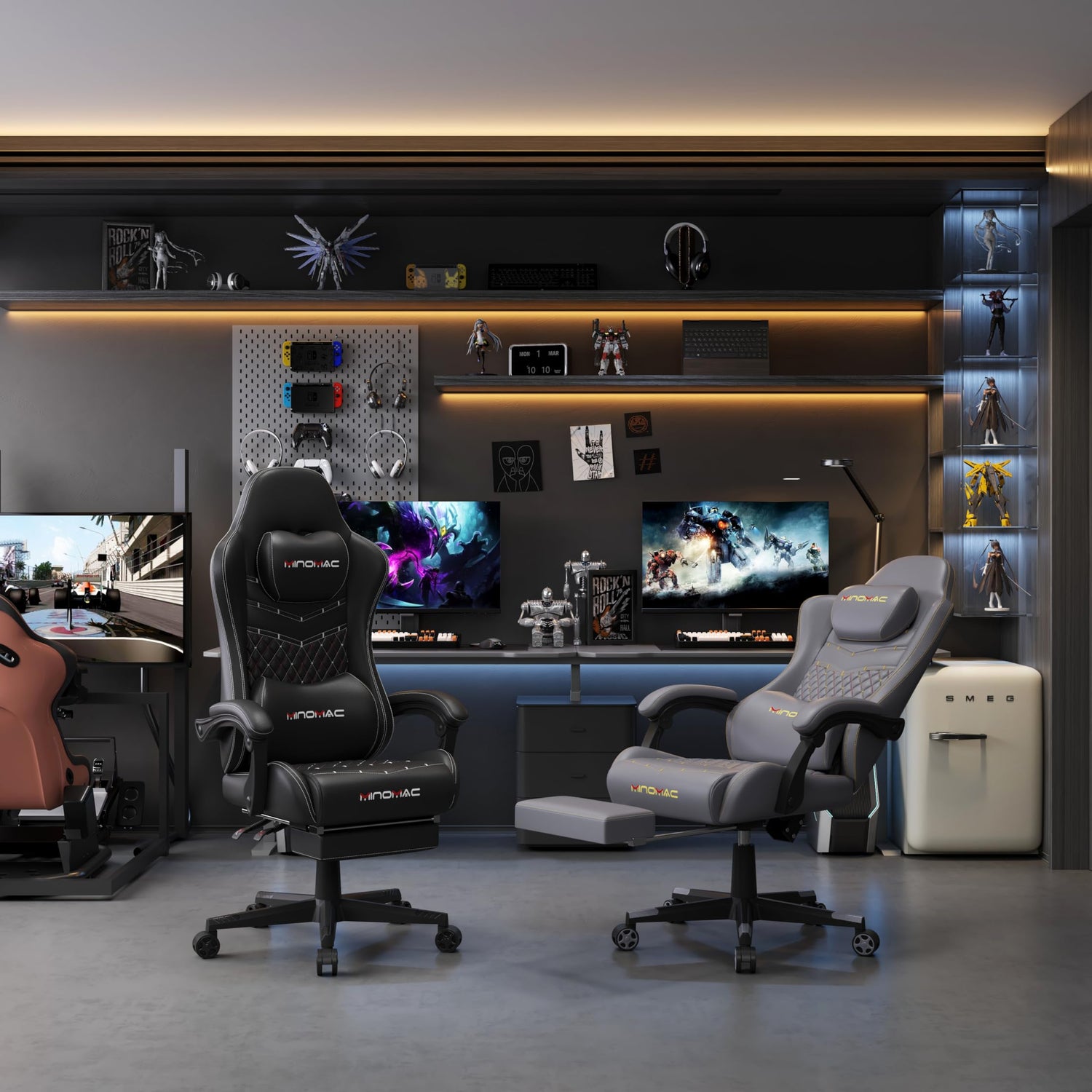 • Gaming Chair,Computer Chair with Footrest,Ergonomic backrest and Lumbar Support,Breathable Leather,400LBS Support,Height Adjustable Game Chair with 360°