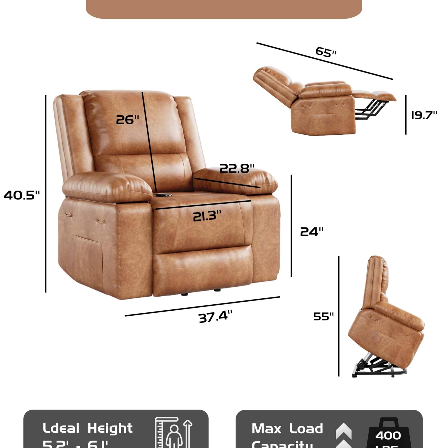 - 【Product Dimensions】The Power Lift Recliner Chair measures 38.6 x 37.4 x 40.6 inches, seat width: 21.3 inches, weight capacity:400 lbs, making it a sturdy and spacious choice for seniors and those with limited mobility