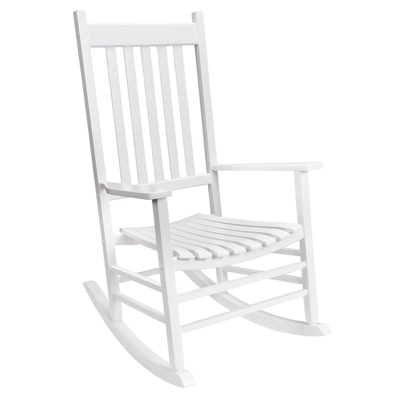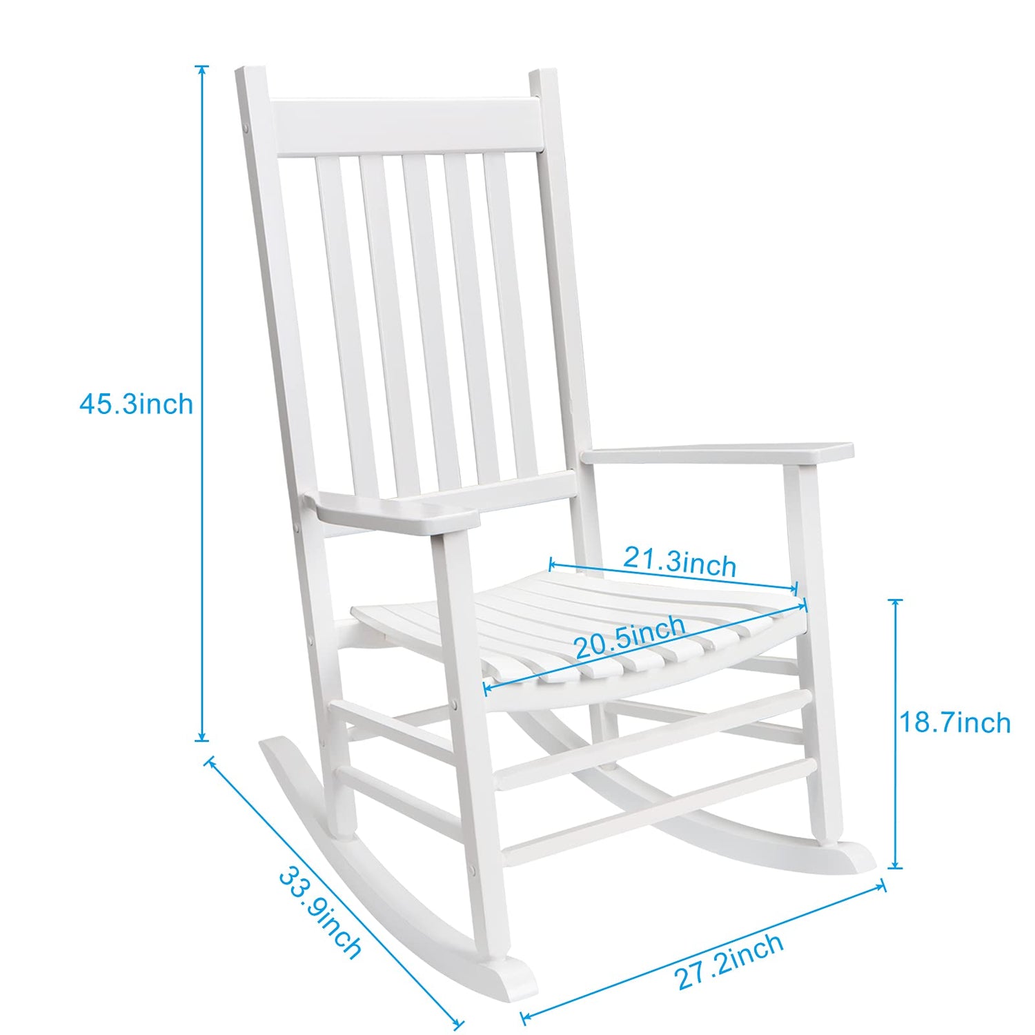 • STURDY & DURABLE:Selected hardwood,this outdoor rocking chair is durable for a long service time,and support up to 340 pounds of weight.The premium wood chair can withstand a range of climates including hot sun, heavy snows & rains, and strong coastal winds and does not dent, crack, peel or rot like the low quality wood chairs.