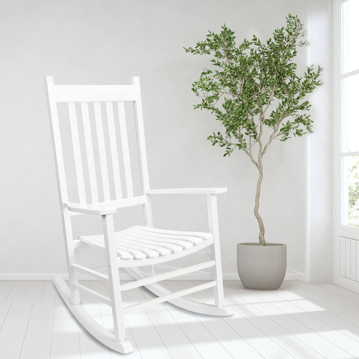 GnL Recsports Patio Rocking Chair, Outdoor Rocking Chair, Wood Porch Rocker, Wooden Rocking Chair for Adult for Garden, Lawn, Balcony, Backyard and Patio (1 White)