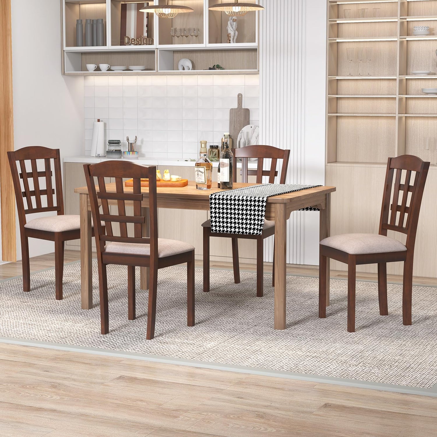 GOFLAME Wooden Dining Chairs Set of 4, Farmhouse Kitchen Side Chairs with Padded Seat & Ergonomic Backrest, Upholstered Dinnete Chairs with Rubber Wood Frame for Dining Room, Restaurant
