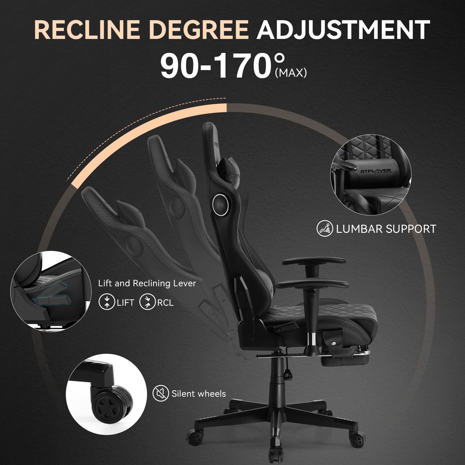 - Ergonomic Gaming Chair with Multi-Functionality: This GTPLAYER gaming chair features an ergonomic high backrest, a removable headrest and lumbar cushion, and padded armrests for a perfect sitting experience. The maximum inclination angle of the backrest is 170°, and it has adjustable height and a retractable footrest for maximum relaxation. This office chair is your ideal seat for work, study, and entertainment