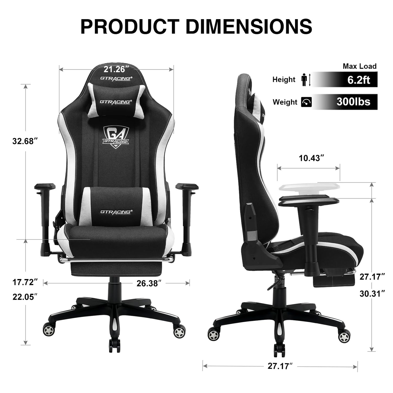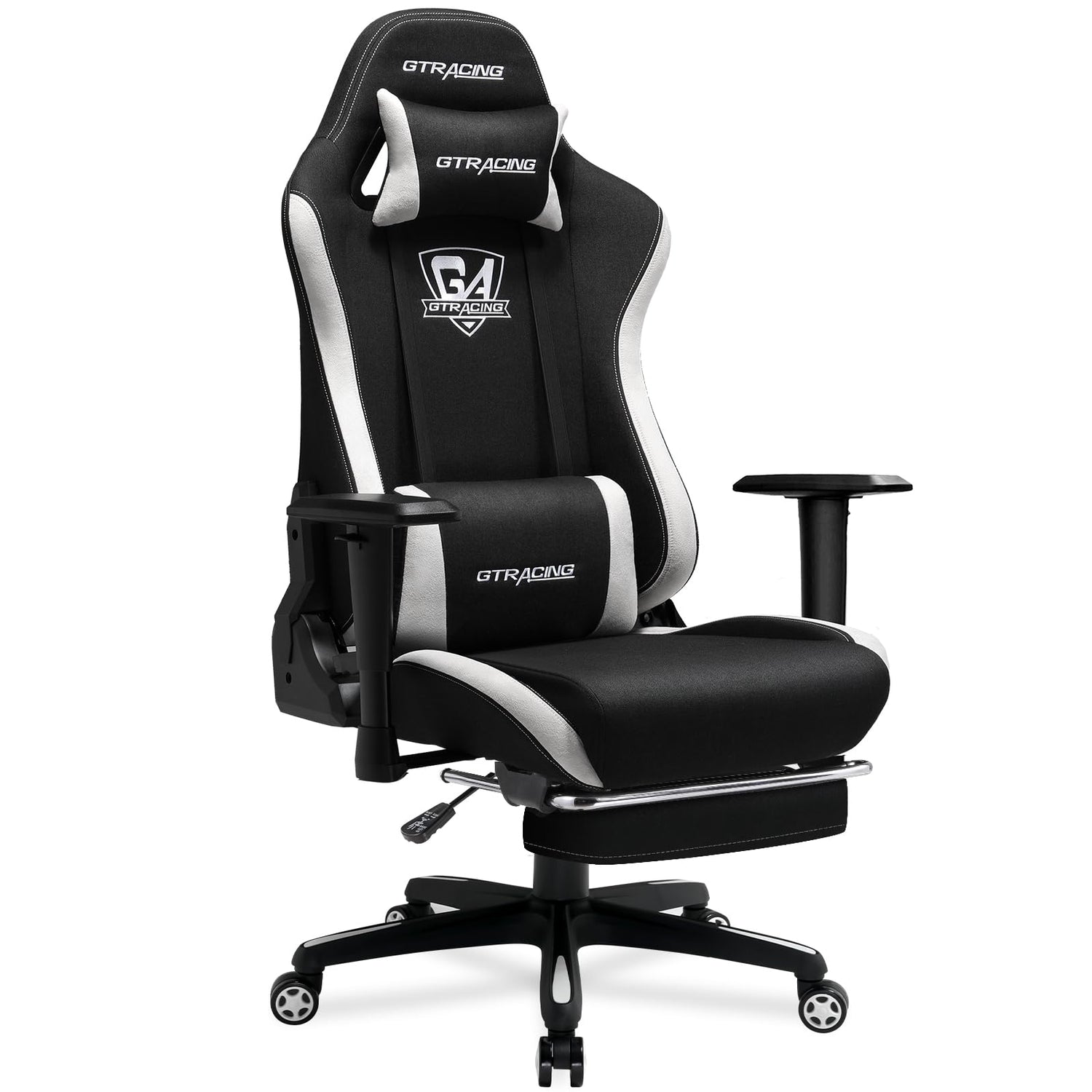 GTRACING Gaming Chair with Footrest, Fabric Breathable Big and Tall Ergonomic Computer Chair 350 lbs with Adjustable Lumbar Support and Recliner, High Back Game Chair for Office Gaming, Black