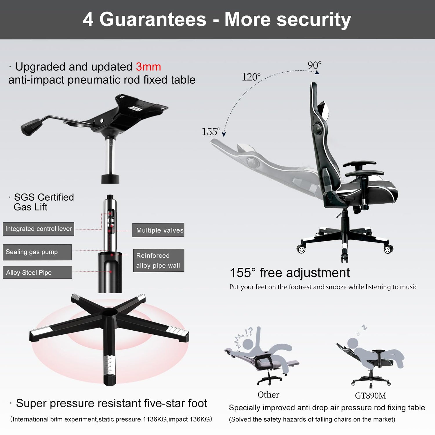 - GTRACING Gaming Chair with Speakers Bluetooth Music Video Game Chair Audio Ergonomic Design Heavy Duty Office Computer Desk Chair