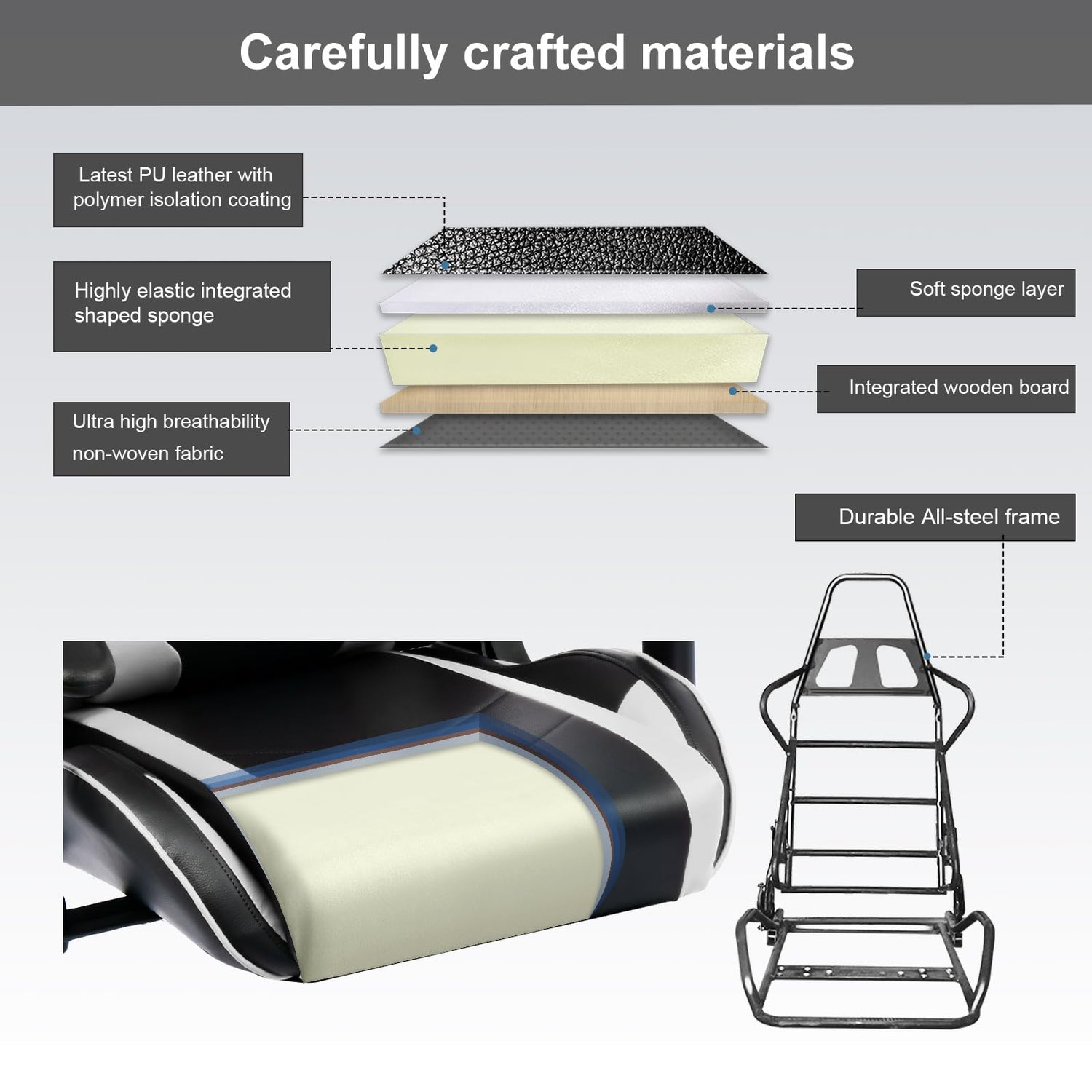 GTRACING Gaming Chair with Speakers Bluetooth Music Video Game Chair Audio Ergonomic Design Heavy Duty Office Computer Desk Chair (White)