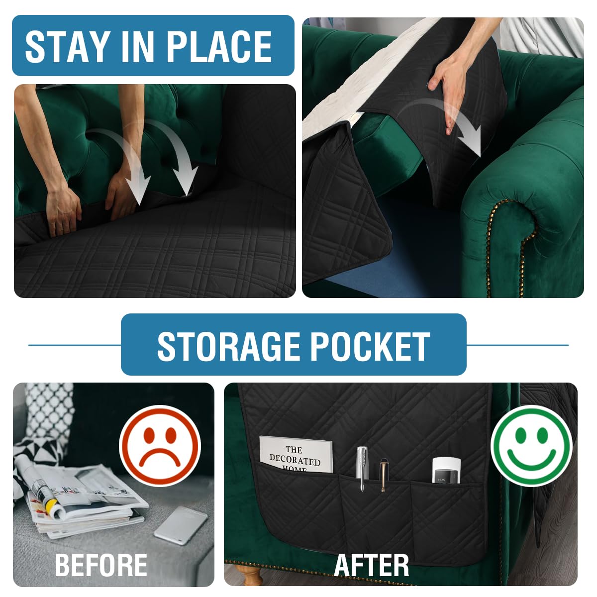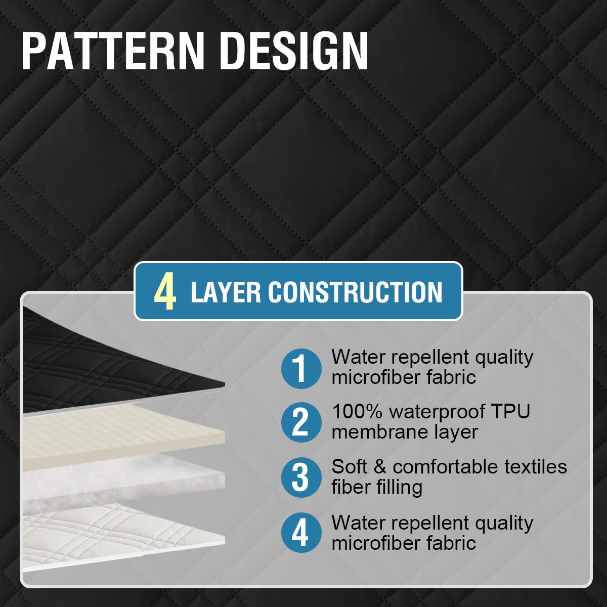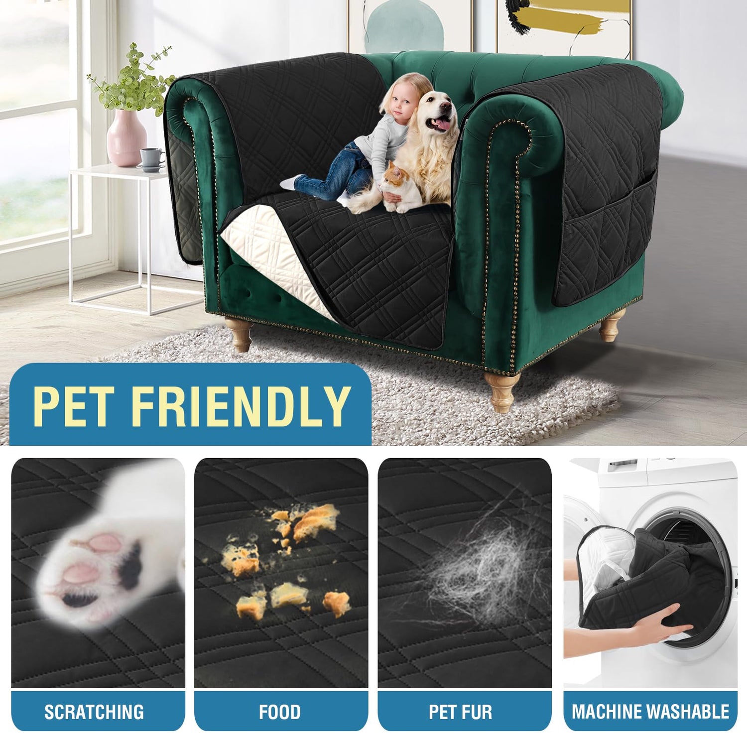 - PET FRIENDLY: Use of 5-layers quilted fabric with artistic geometry double diamond pattern, compared to the other 3-layers quilted fabric more sturdy and durable. Soft and thick sofa protector adopting 100% waterproof technology protect your furniture from the destructive behavior of pets easily. It's a great choice for homes with children and pets.
