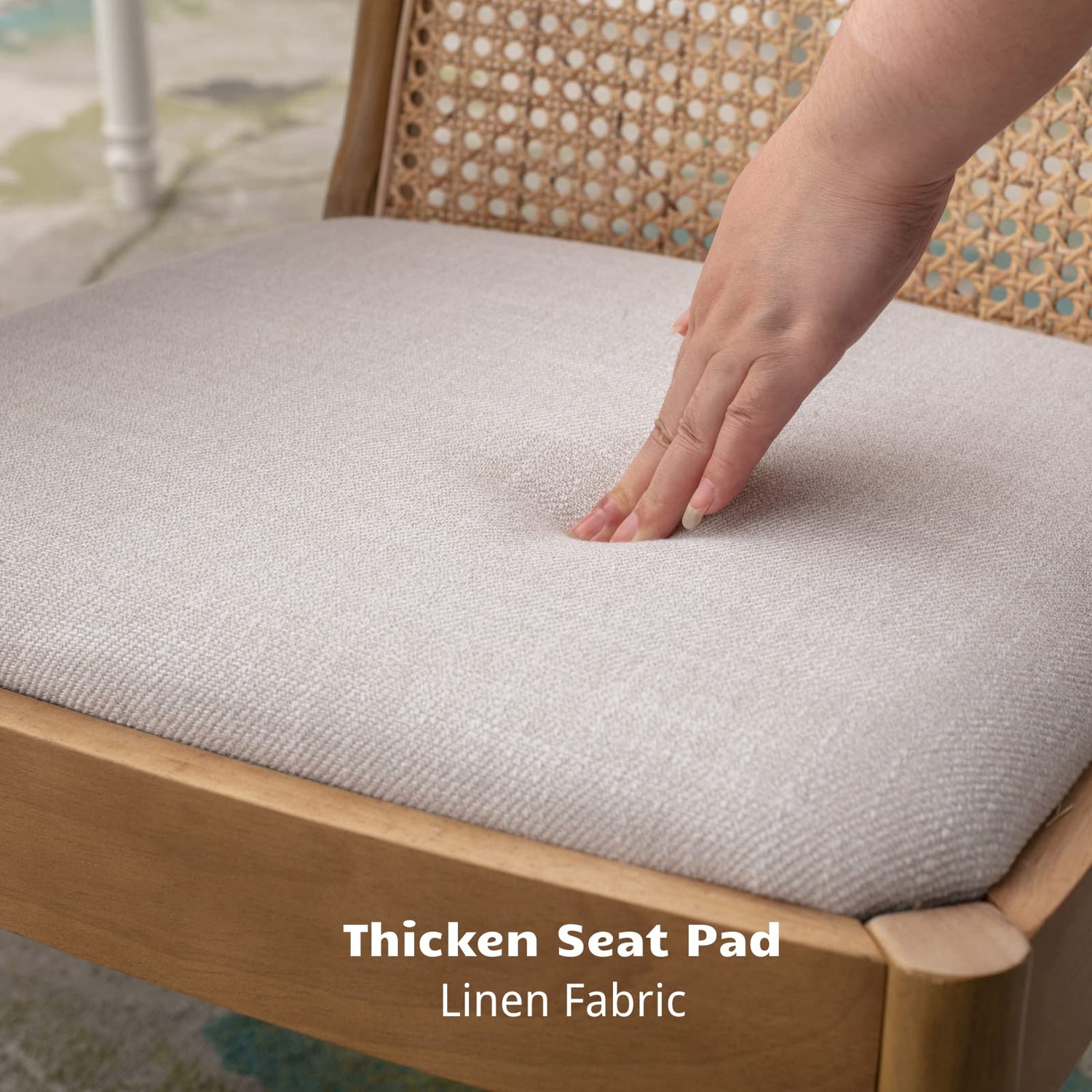 - [Solid Wood Legs] The rattan dining chair is supported by four wood legs, solid and stable; The foot pads on the bottom of the legs can protect your floor from scratches.