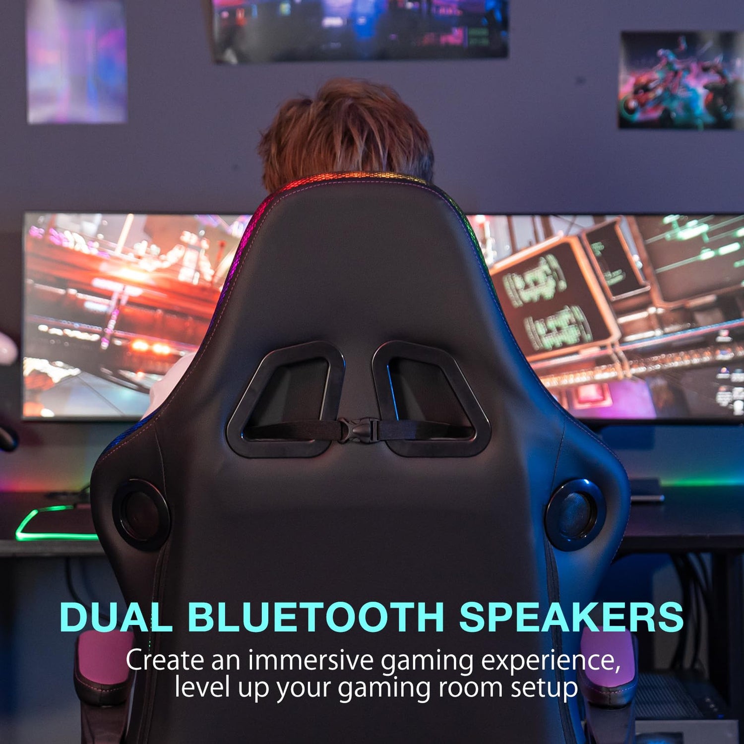 - 【RGB Gamer Chair】LED flashing lights surrounding the whole chair and multiple lighting modes to change, creating a more dynamic feel in your gaming room