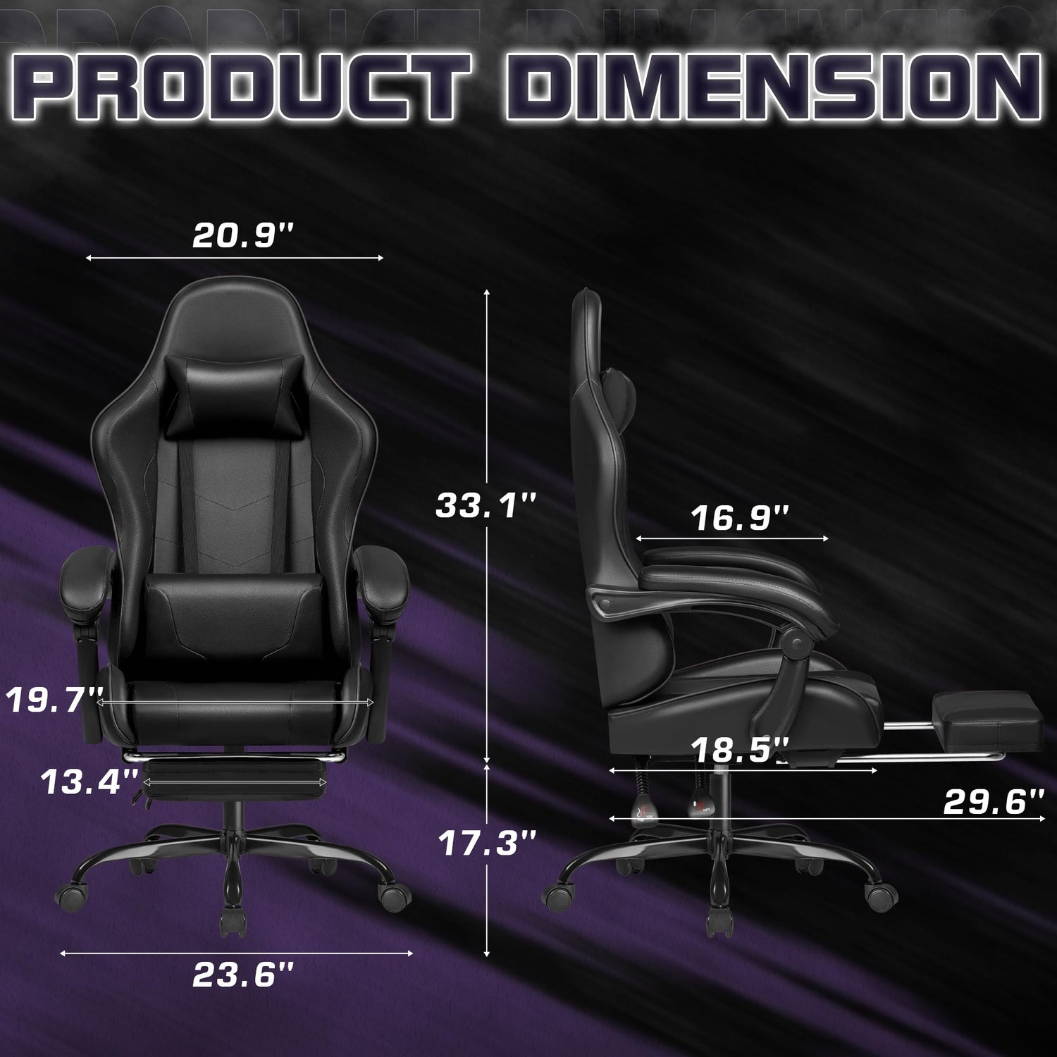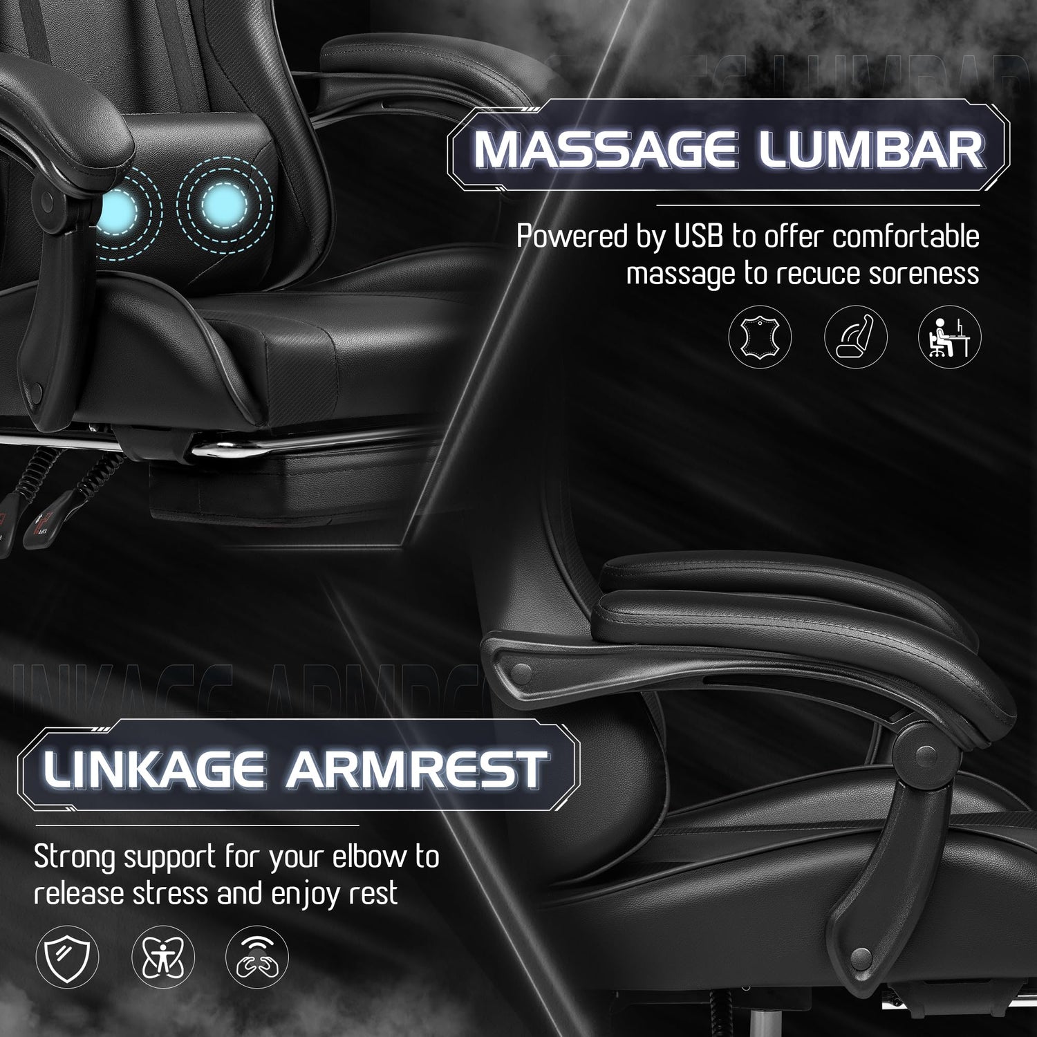Homall Gaming Chair, Video Game Chair with Footrest and Massage Lumbar Support, Ergonomic Computer Chair Height Adjustable with Swivel Seat and Headrest (Dark Black)