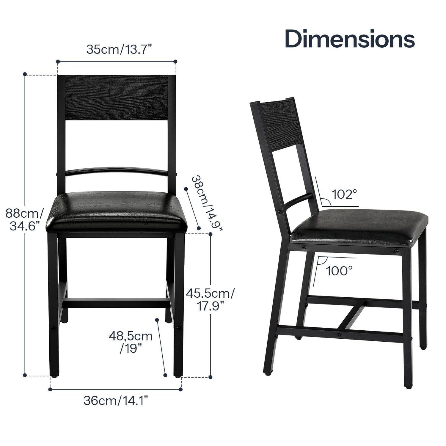 - Versatile Style for Any Home:The modern dining chairs have versatile style for any home: Measuring 14.1"L x 14.9"W x 34.6"H and finished in a timeless black hue, these kitchen table chairs set of 2 seamlessly blend into various home decors. Perfect for dining rooms, kitchens or studies, the dining chair stool add a touch of elegance to any setting