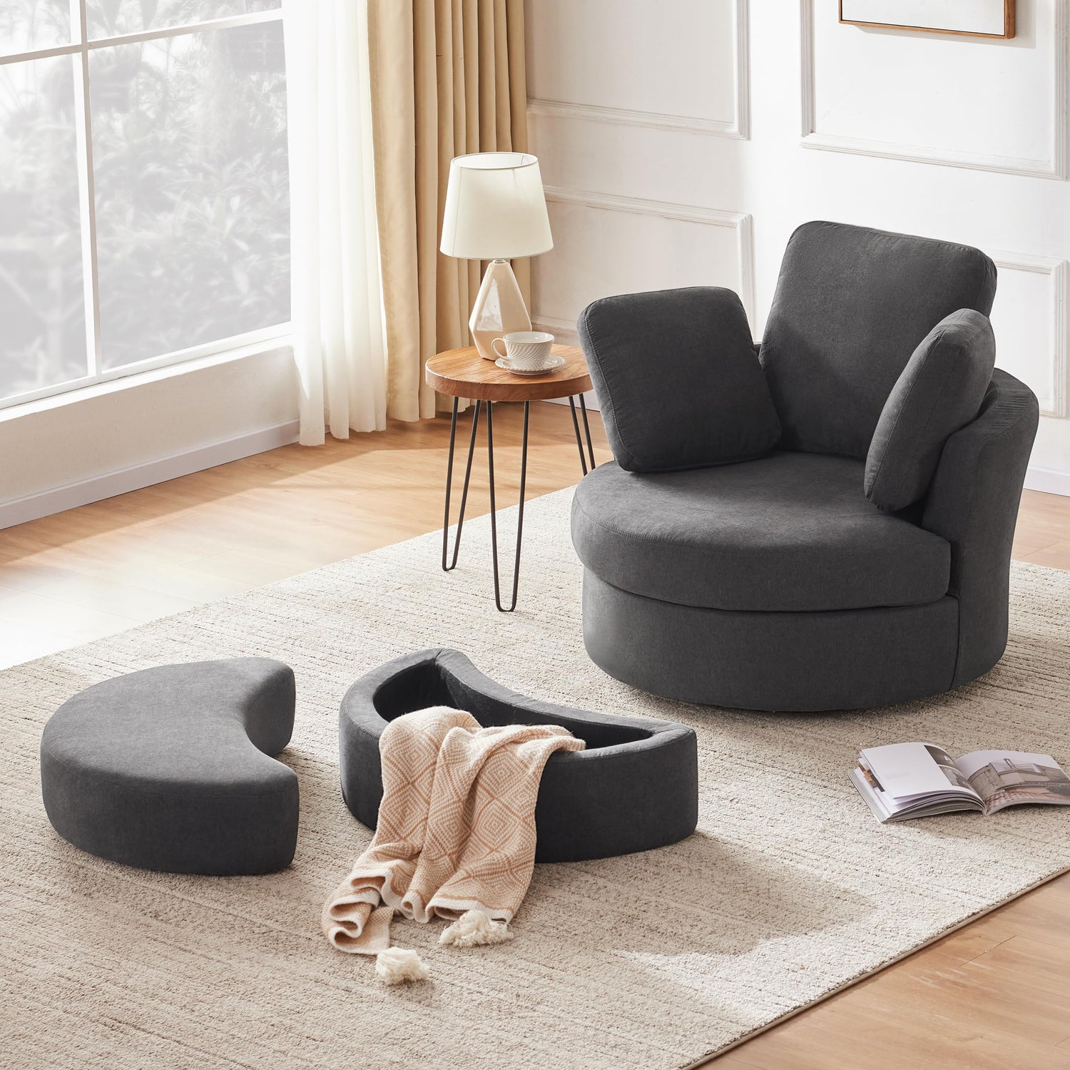 • Oversized Chair with Ottoman Set: The round swivel chair includes a flexible ottoman that serves as both a footrest and storage for items like blankets and magazines, enhancing the cleanliness of your room