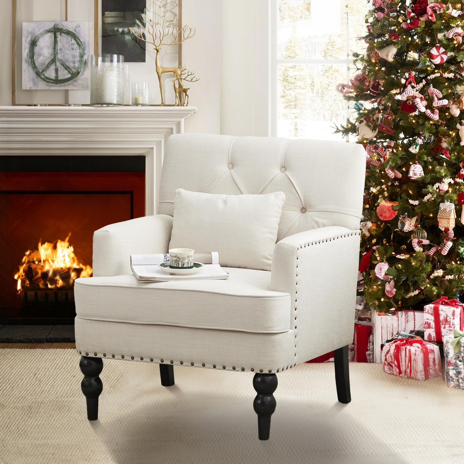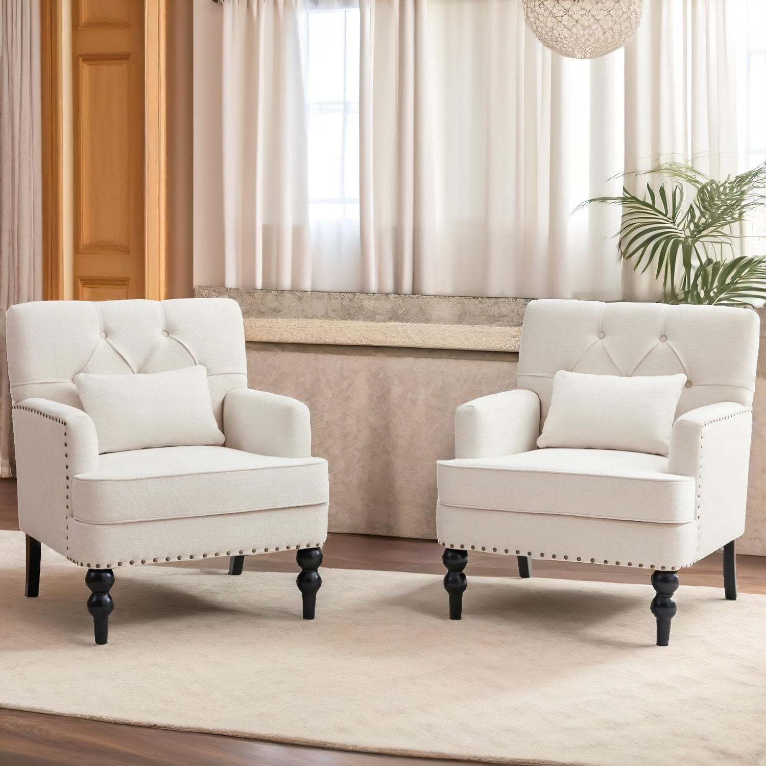 HUIMO Tufted Club Chair Set of 2,Accent Chair with Lumbar Pillow, Upholstered Button Armchair, Fabric Sofa Chairs for Bedroom, Living Room, Mid Century Modern with Studded Reading Chair(2,Beige)