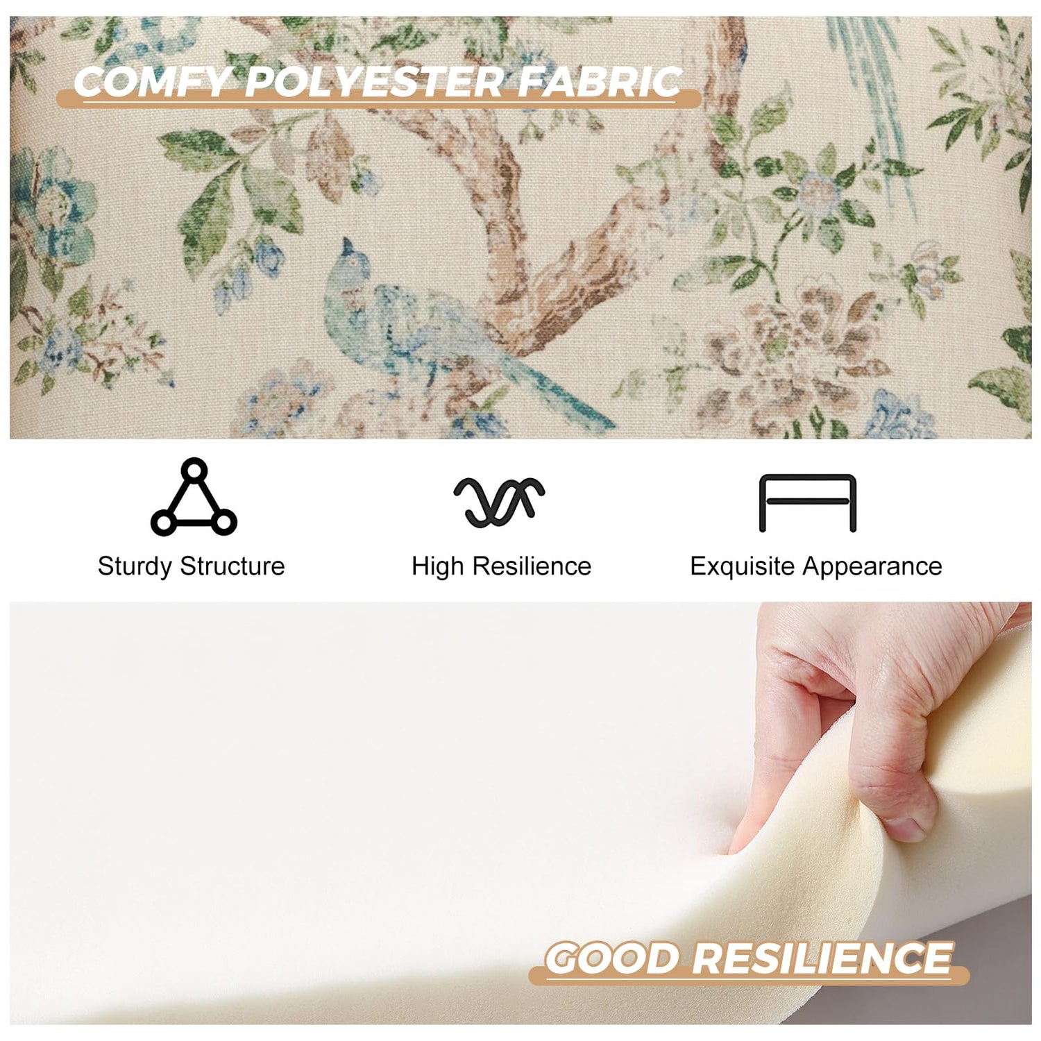 - STURDY DURABLE FRAME-The armrests and frame are made of solid wood, there is no peculiar smell. Our living room chair is so sturdy that can hold up to 250 pounds. Sturdy wooden legs with feet pads, keep it from sliding and scratching hardwood floor, stable enough for long time use. Our chair is made of 100% polyester fabric, which is breathable, skin-friendly and not easy to pill.