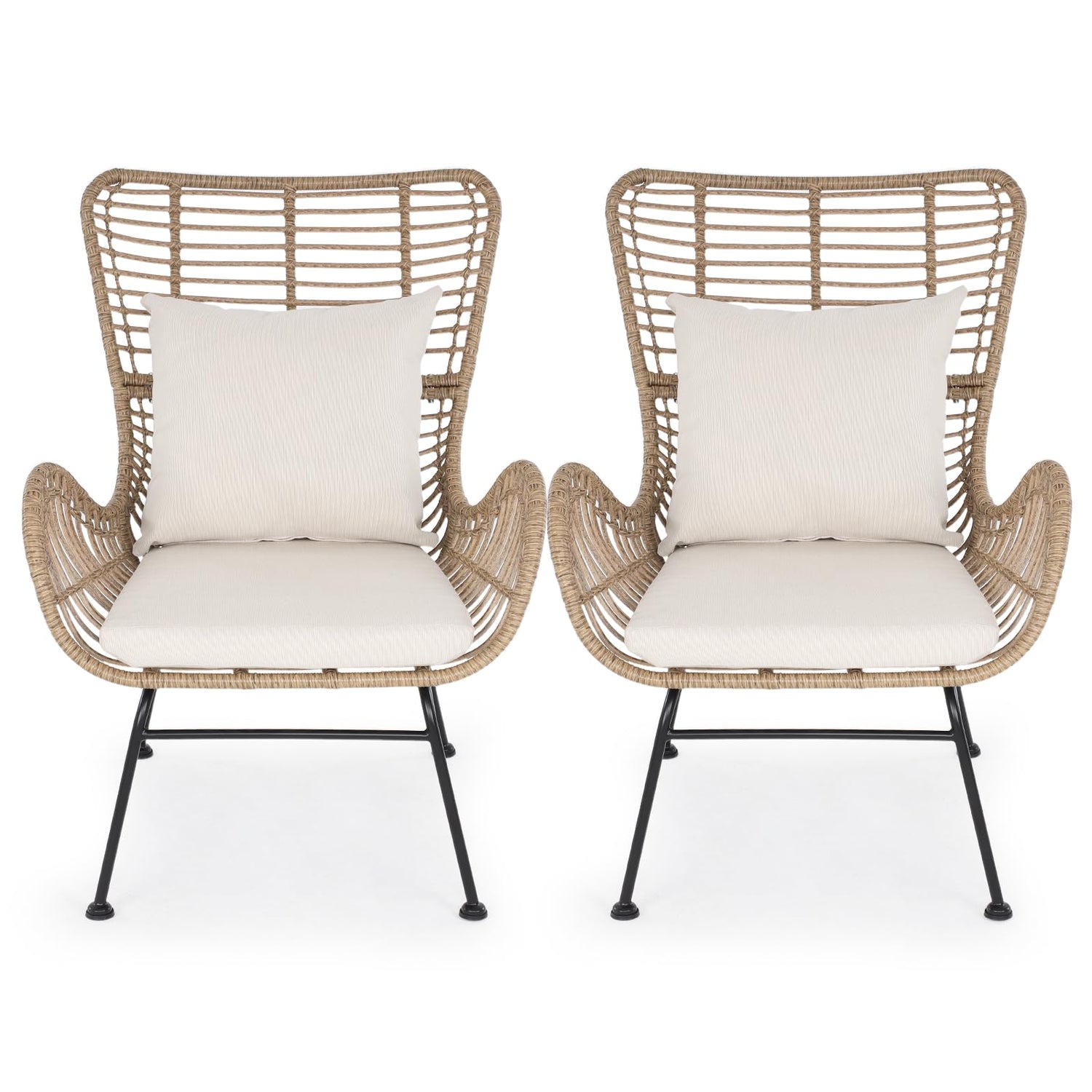 IDZO Isabelle Upgraded 2000 Hours UV Wicker Chairs Outdoor Set of 2, 500 lbs Capacity Outdoor Patio Chair, All-Weather Club Chair with Water-Resistant Olefin Cushions, Boho Style, Beige
