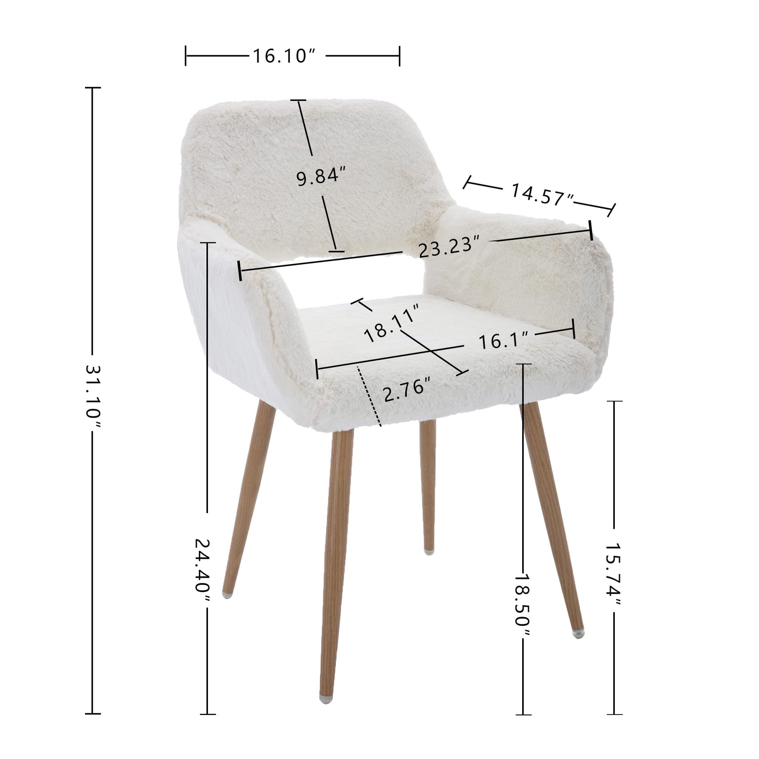 KCC Furry Desk Chair, Mid-Century Modern Accent Comfy Armchair with Faux Fur for Teen Girls, Wood Look Metal Legs Living Dining Room, Home Vanity Makeup Office No Wheel, White.