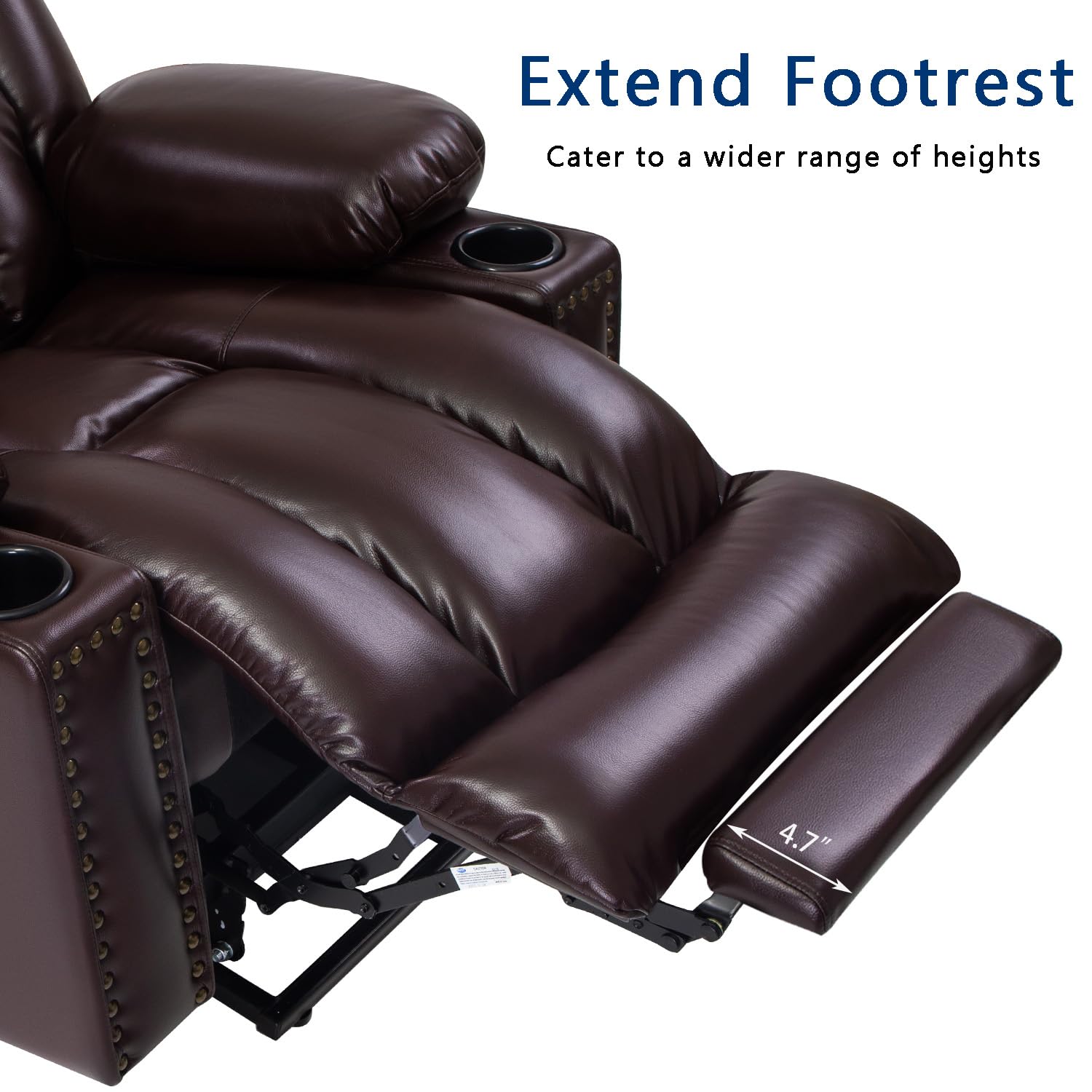 - 【Breathable Leather】Compared with a Fabric recliner, Breathable leather recliner chairs are More Luxury and Easier to clean. Breathable leather with Breathable Microholes has good air permeability, moisture absorption, and sweat removal ability.
