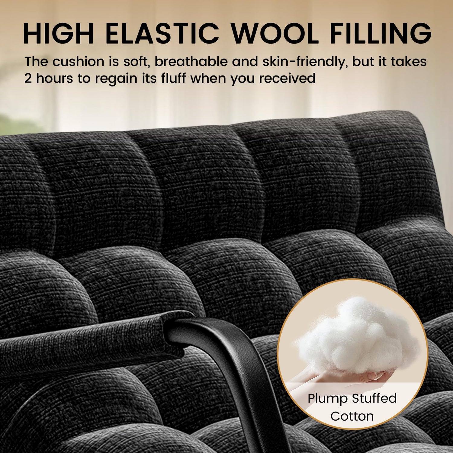 - Rocking Chair with Secured Cushion: This modern rocking chair features a movable padded design and securing straps to keep the cushion in place. Made from durable polyester fabric, the deep seat cushion ensures comfort for extended sitting